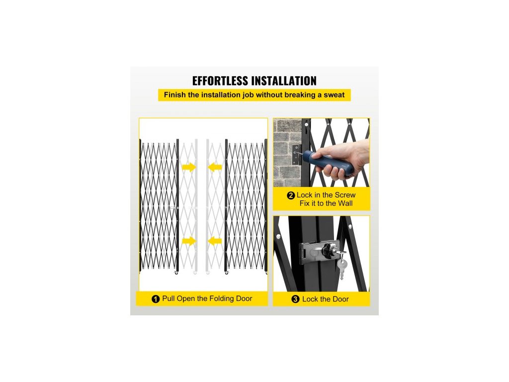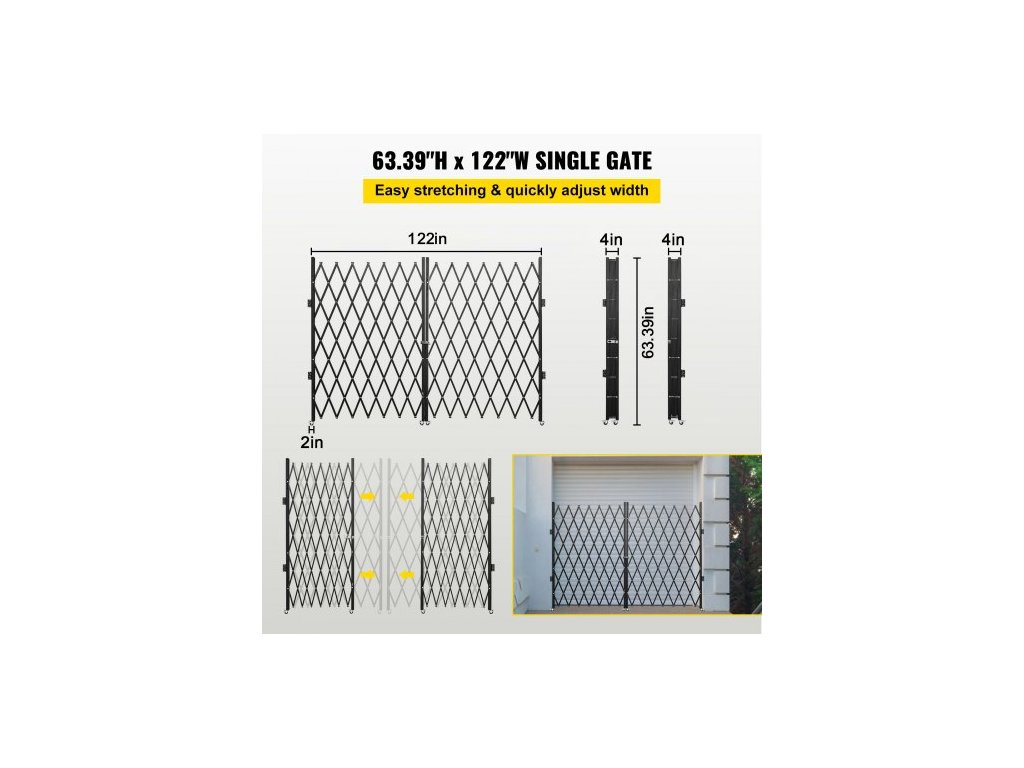 Rozměry ve složeném stavu (V x Š): 61 x 8,2 palce/5,1 x 0,7 stopy,Barva: Černá,Materiál: 3/4" ocel o tloušťce 14 mm,Typ dveří: Dvojité skládací dveře,Rozměry ve složeném stavu (V x Š): 61 x 122 palce/5,1 x 10,2 stopy,Hmotnost položky: 42 lbs/19 kg,Povrch: Práškový povrch
