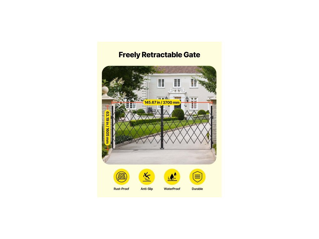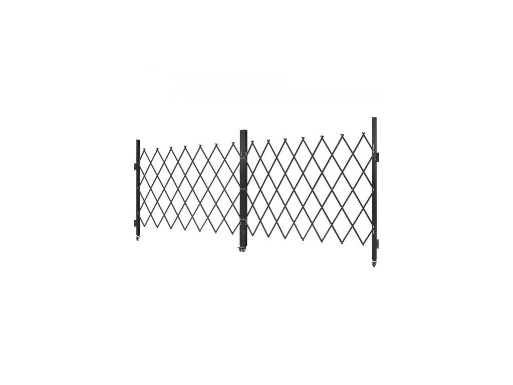 Dvojitá skládací bezpečnostní brána , uzamykatelná nůžková brána s otočnými kolečky o 360°, venkovní ocelová zatahovací brána s barikádou, pro zabezpečení vstupu, garáže, skladu a bazénu, 370 × 160,5 cm (Š × V)
