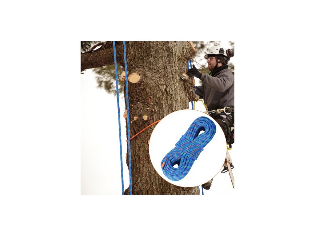 Dynamické lezecké lano 10,2 mm, 70 m (230 stop), venkovní lezecké lano, mezní napětí 25 kN, roztažitelné vláknité lano s ocelovými karabinami pro únik, slaňování a hasičskou záchranu, modréBezpečnost na prvním místě