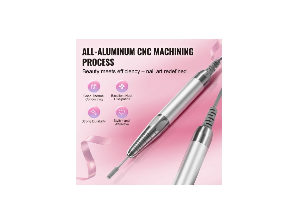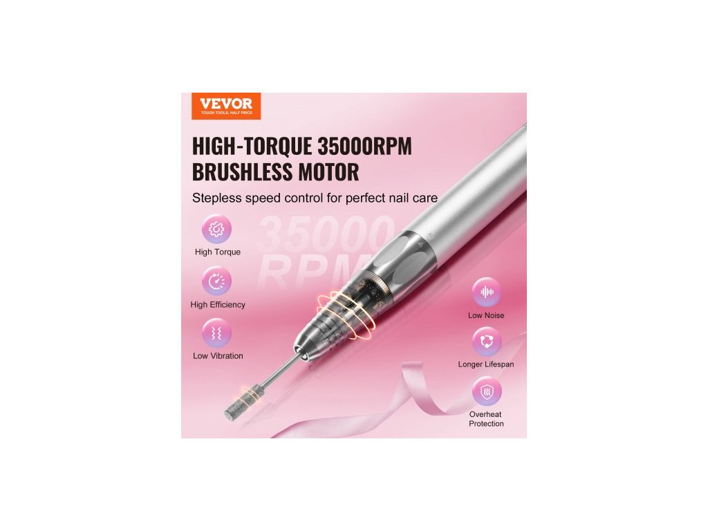 Elektrická akumulátorová vrtačka na nehty - s vysokotočivým bezkartáčovým motorem 35000 RRM, dobíjecí elektrický pilník na nehty s 6 bity a 50 kusy brusných pásů na akrylové gelové nehty, přenosný nástroj pro manikúru a pedikúruProdloužená výdrž baterie