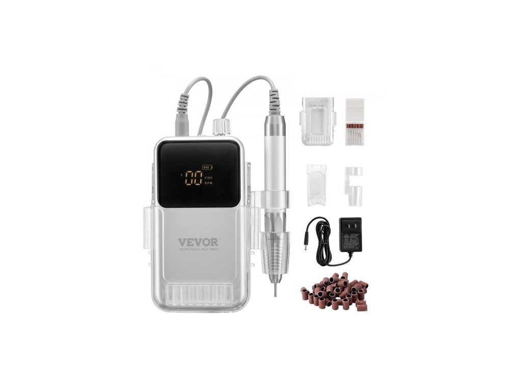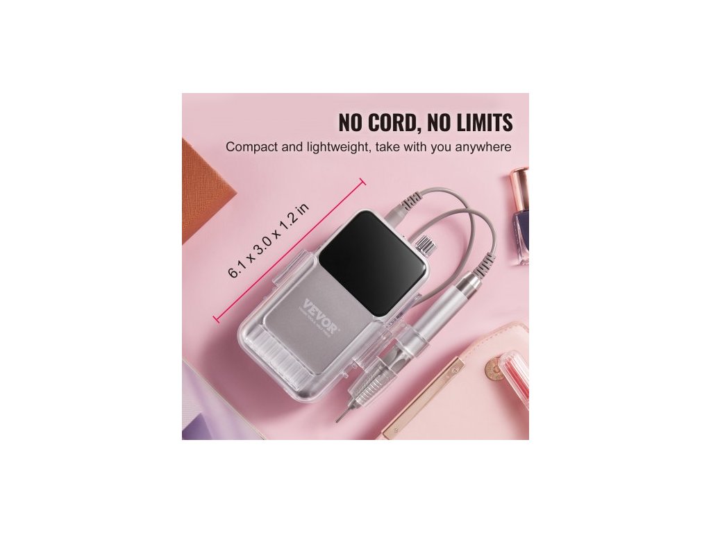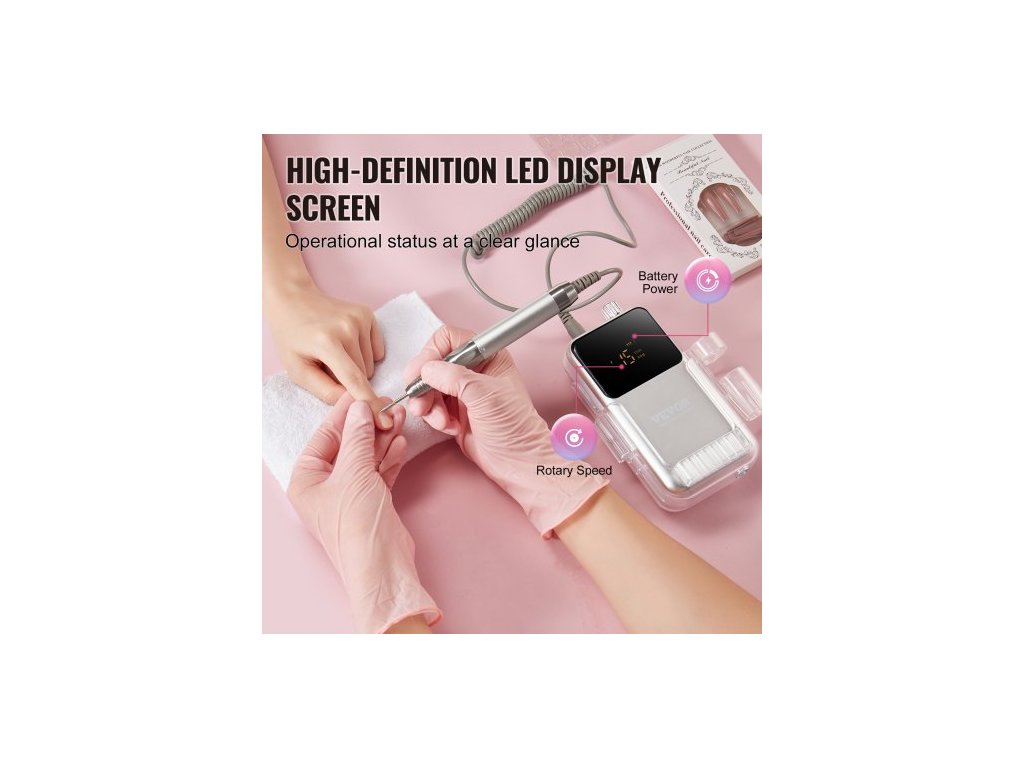 Elektrická akumulátorová vrtačka na nehty - s vysokorychlostním bezkartáčovým motorem 35000RRM, dobíjecí pilník na nehty s 6 bity a 50 kusy brusného pásu na akrylové gelové nehty, přenosný nástroj pro manikúru a pedikúru