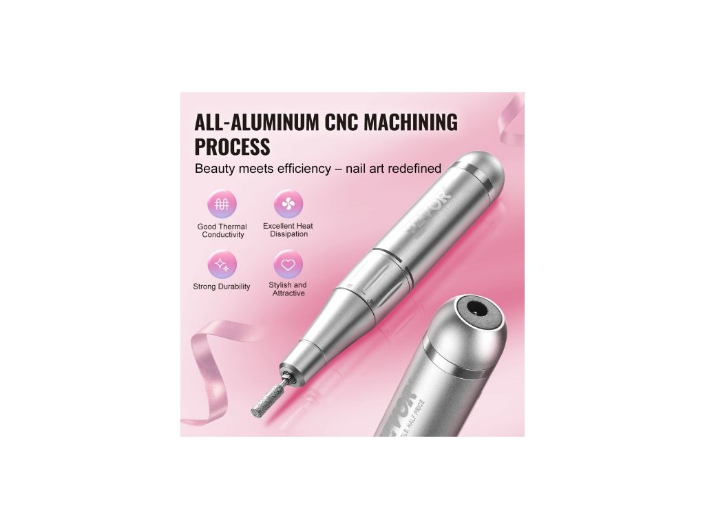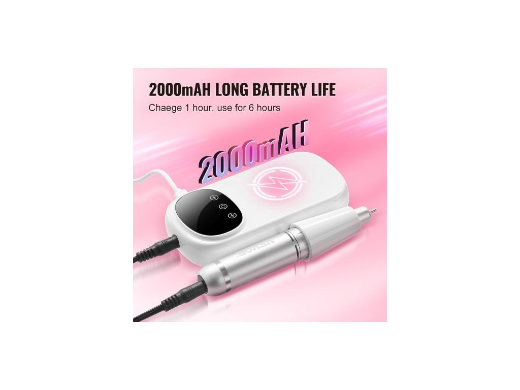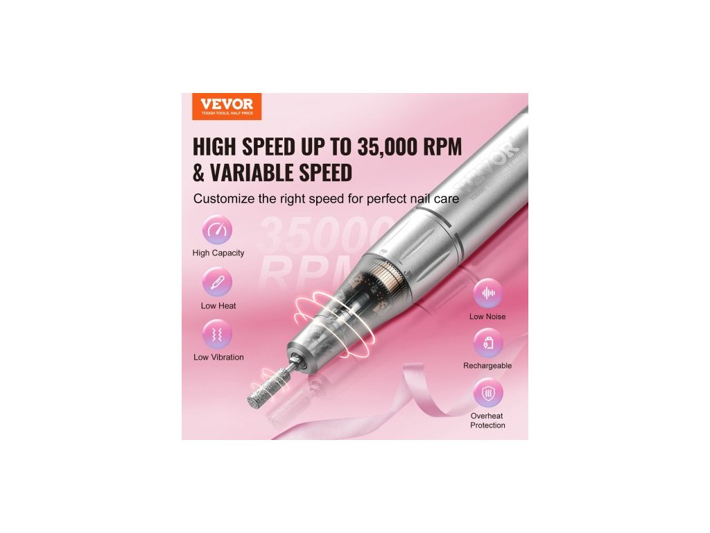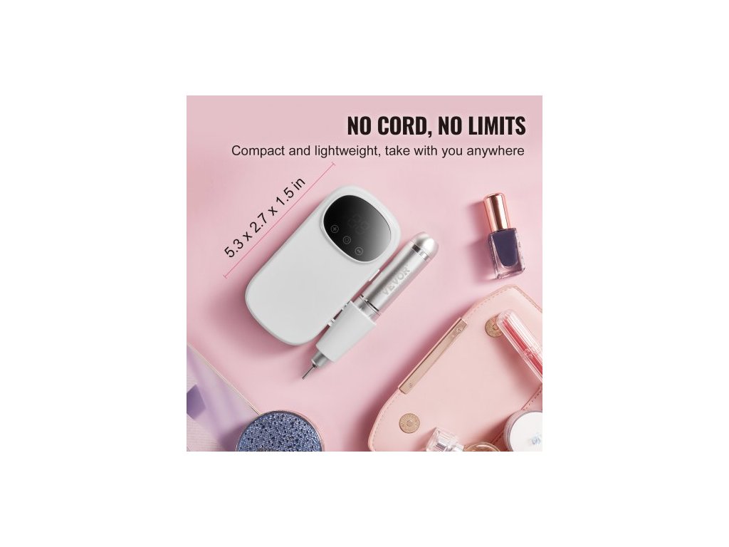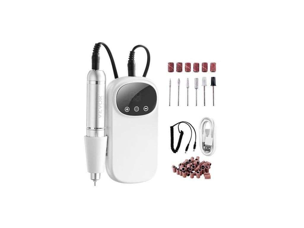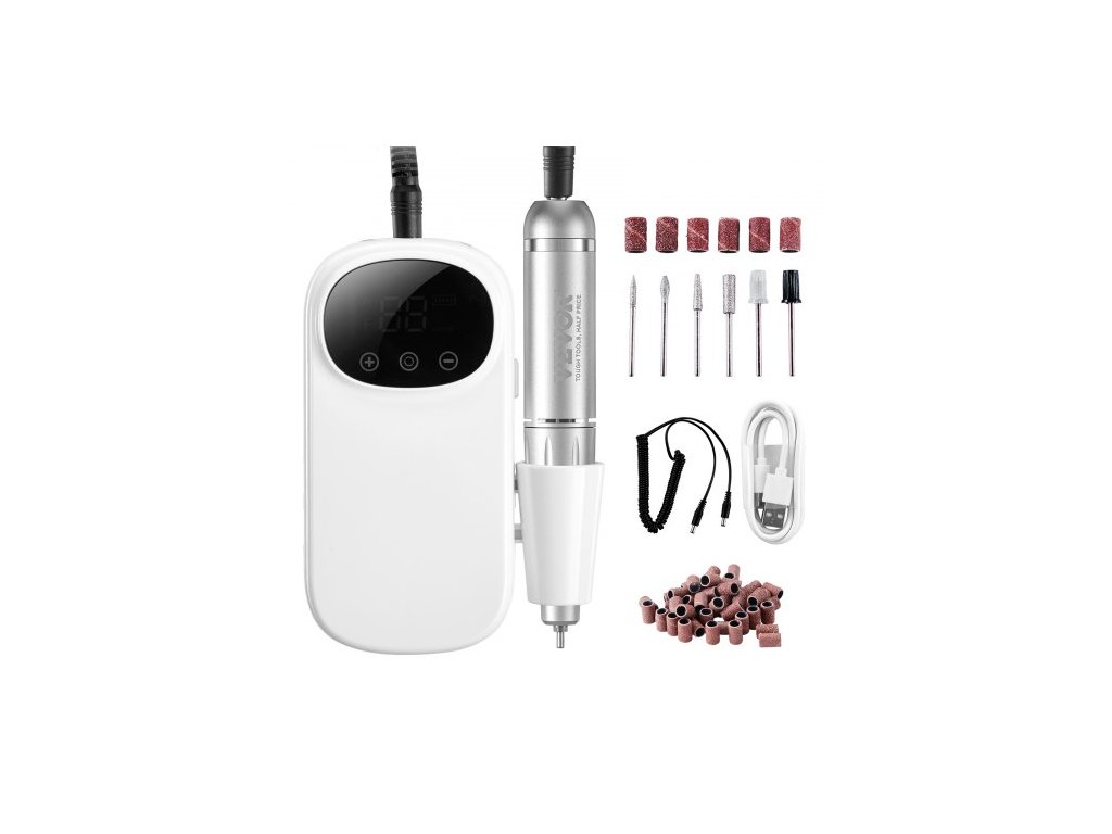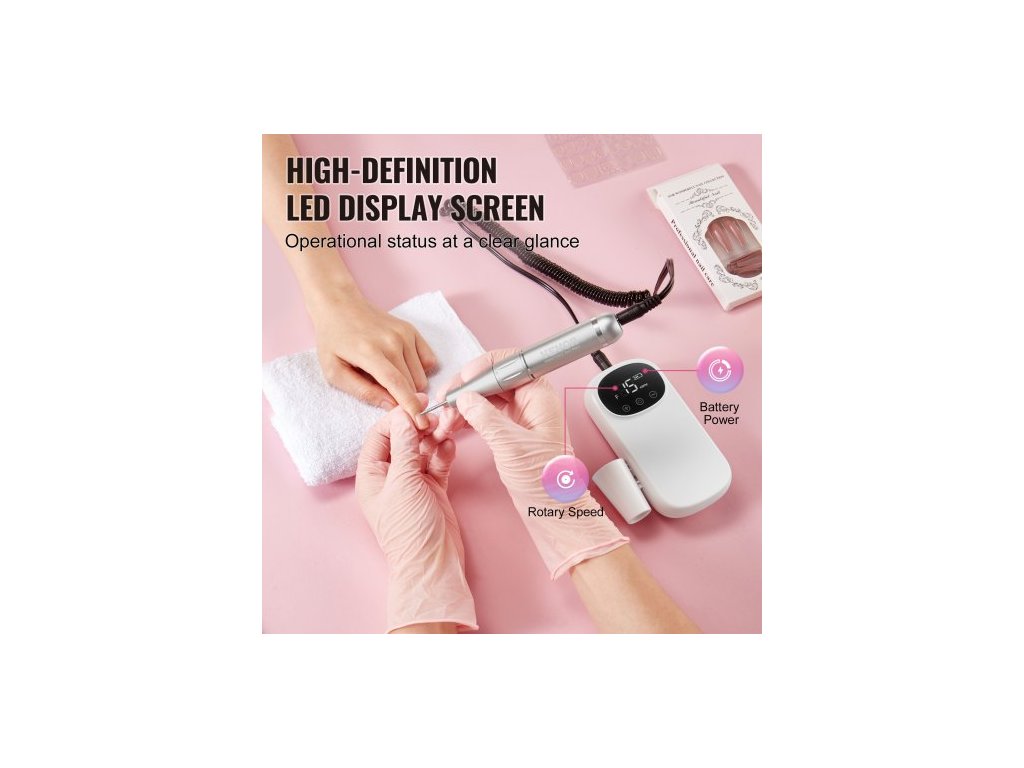 Elektrická dobíjecí vrtačka na nehty , přenosný akumulátorový pilník na nehty s rychlostí 35 000 ot./min, bruska na akrylové gely s LCD displejem, 6 bity a 50 ks brusných pásů pro manikúru, pedikúru a lakováníProdloužená výdrž baterie