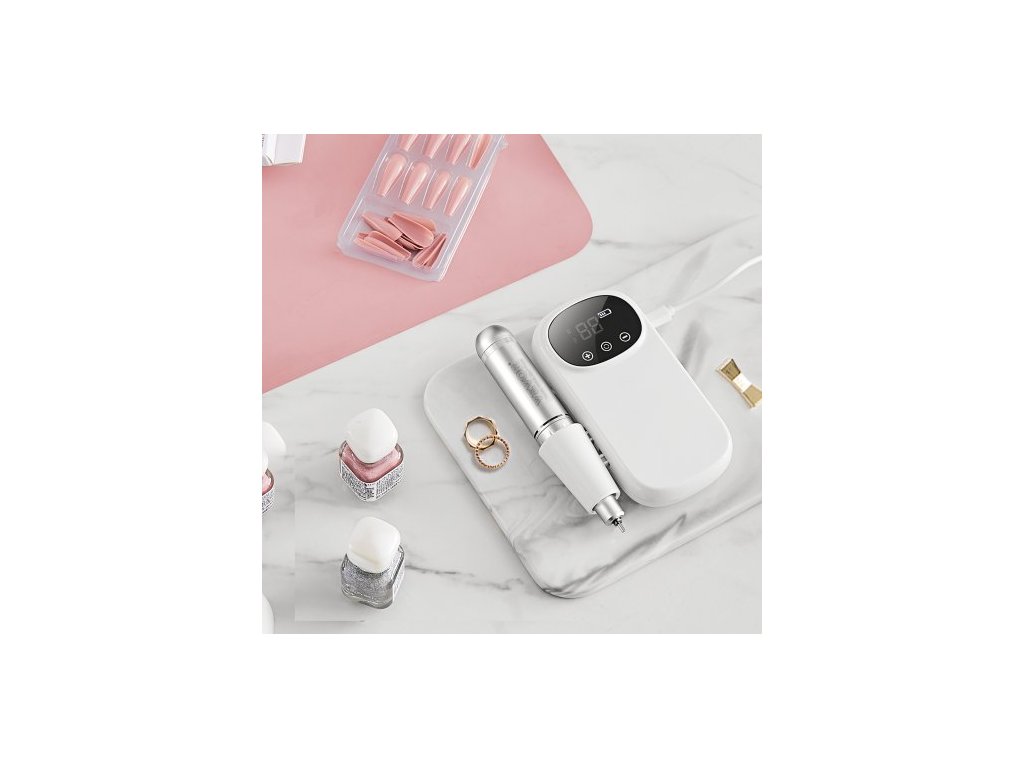 elektrická dobíjecí vrtačka na nehty, přenosný akumulátorový pilník na nehty s rychlostí 35 000 ot./min, LCD displej, bruska na akrylový gel s 6 bity a 50 ks brusných pásů pro manikúru, pedikúru a lak na nehty
