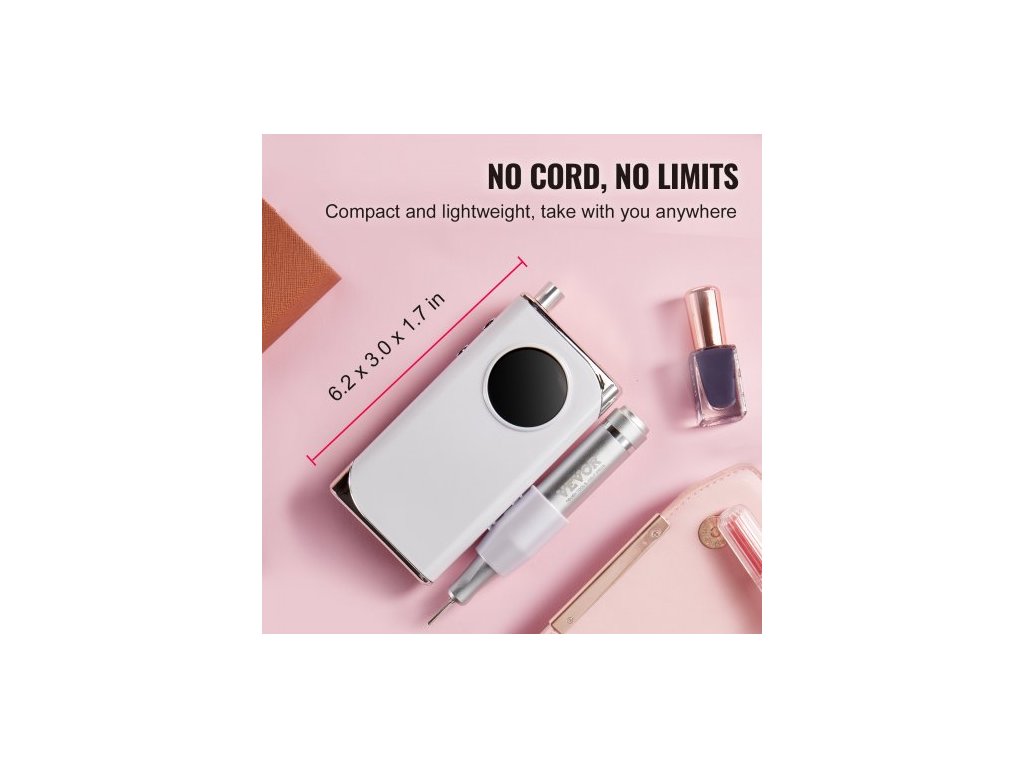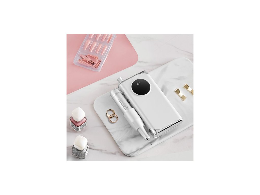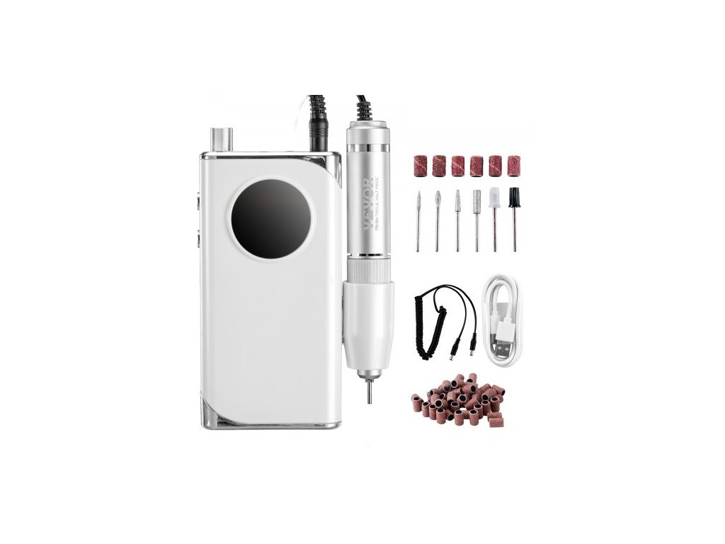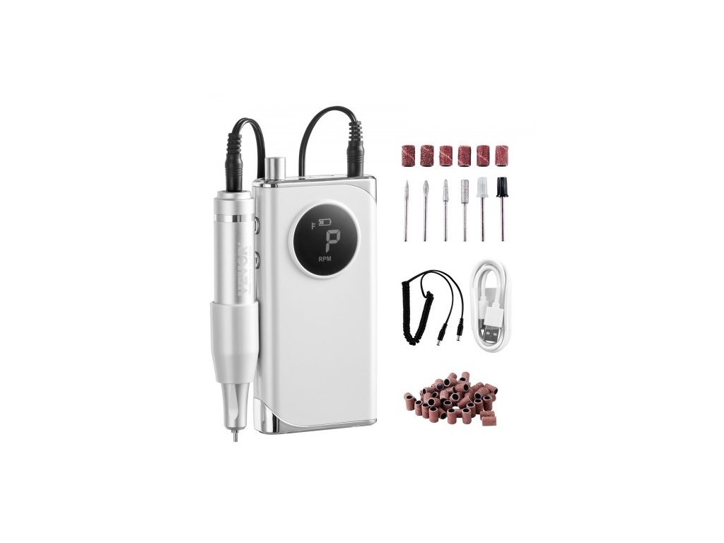 elektrická dobíjecí vrtačka na nehty, přenosný akumulátorový pilník na nehty s rychlostí 40 000 ot./min, LCD displej, bruska na akrylový gel s 6 bity a 50 ks brusných pásů pro manikúru, pedikúru a lak na nehty