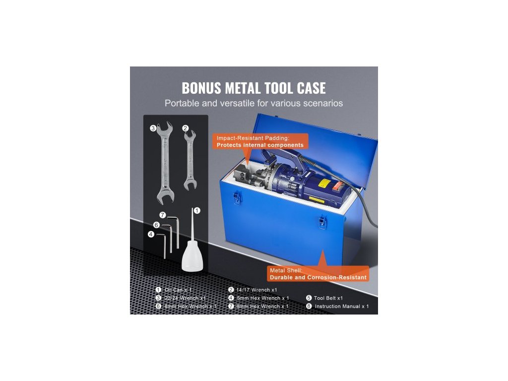 Hlavní materiály: Litina (hlava a tělo čerpadla), hliník (plášť stroje), Čistá hmotnost jedné jednotky: 54 lbs / 24,5 kg, Barva: Černá + modrá, Číslo modelu položky: RC-25, Jmenovitý výkon: 1700 W, Rozměry produktu: 18,9 x 5,9 x 10 palců / 480 x 150 x 255 mm, Čistá hmotnost: 69,1 lbs / 31,33 kg (včetně všech příslušenství), Průměr řezu: 0,2–0,98 ± 0,02 palce / 5–25 ± 0,5 mm