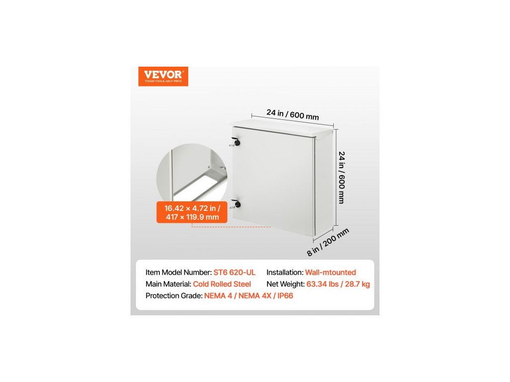 Elektrická ocelová krabička NEMA 4 Venkovní krabička 60x60x20 cm ULPrémiový ocelový materiál