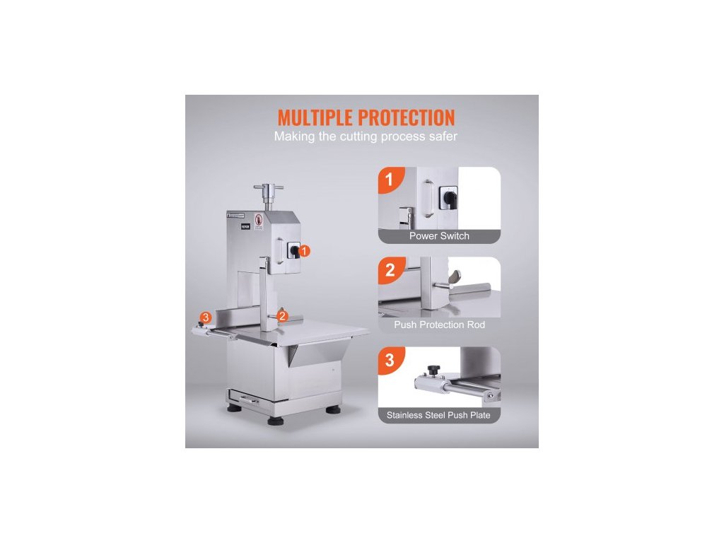 Komerční elektrická pásová pila na maso 2200W z nerezové oceli, pila na kostiEfektivní a spolehlivá
