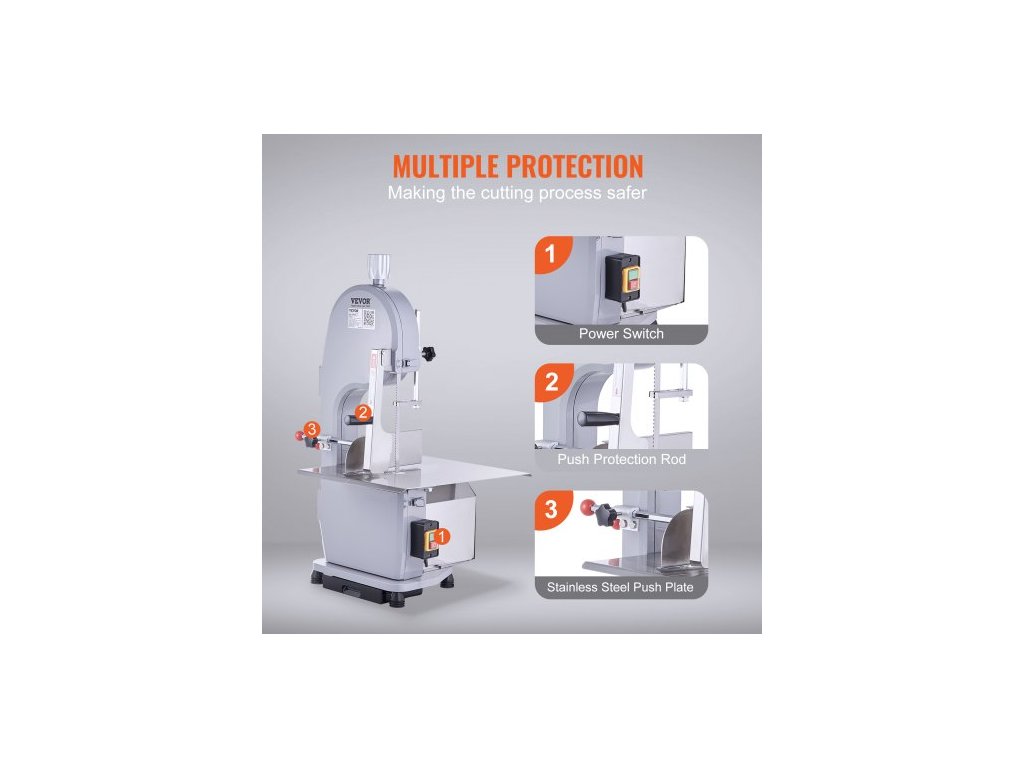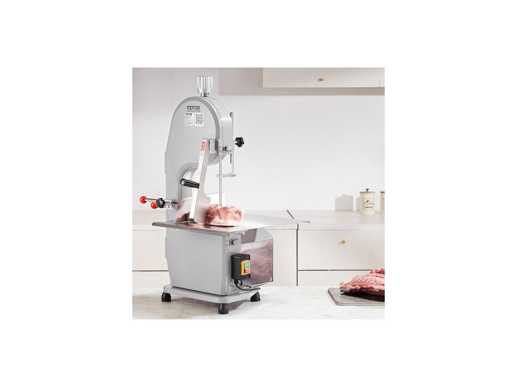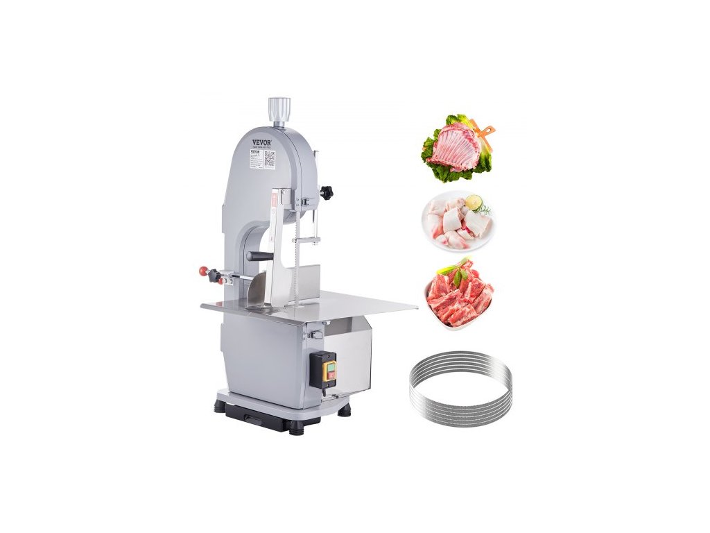 Komerční elektrická pásová pila na maso , nerezová stolní pila na kosti 1100 W, Workbeach 19,3" x 15", tloušťka řezu 0,16-7,9 palce, řezačka mraženého masa s 5 noži na vepřová a hovězí žebraEfektivní a spolehlivá