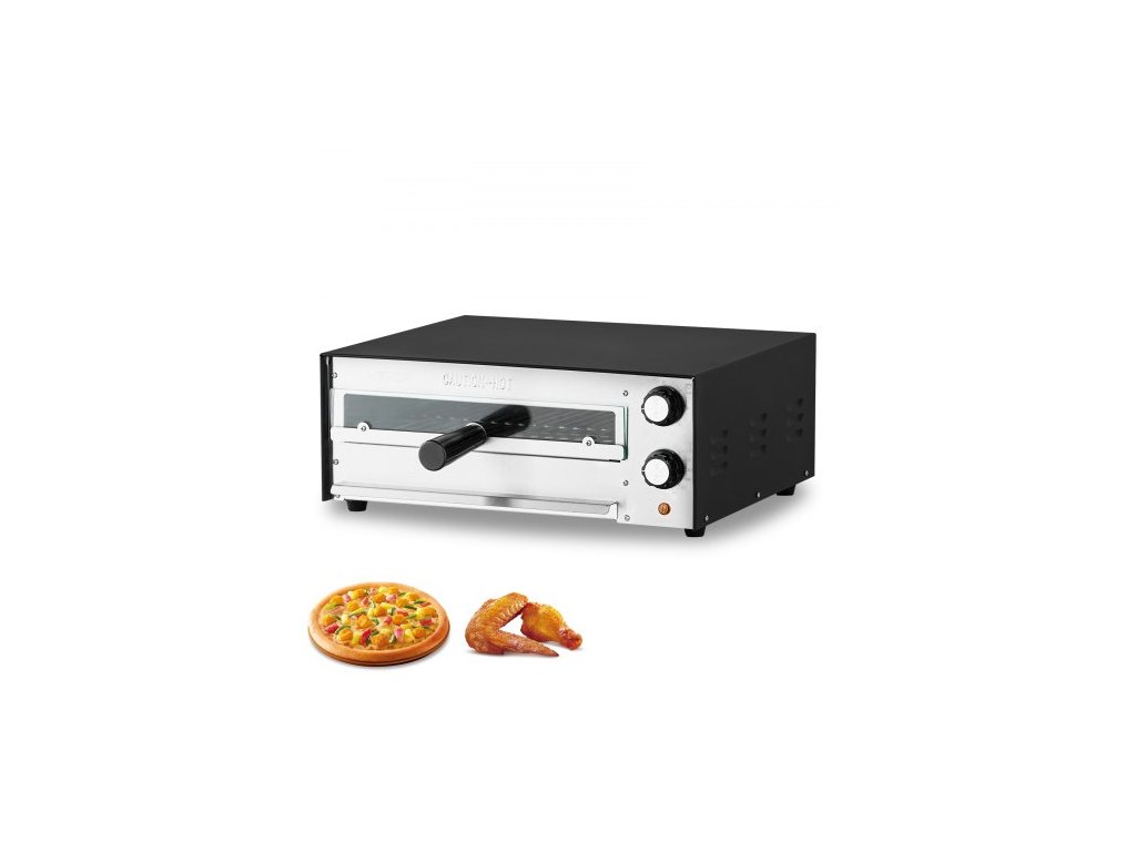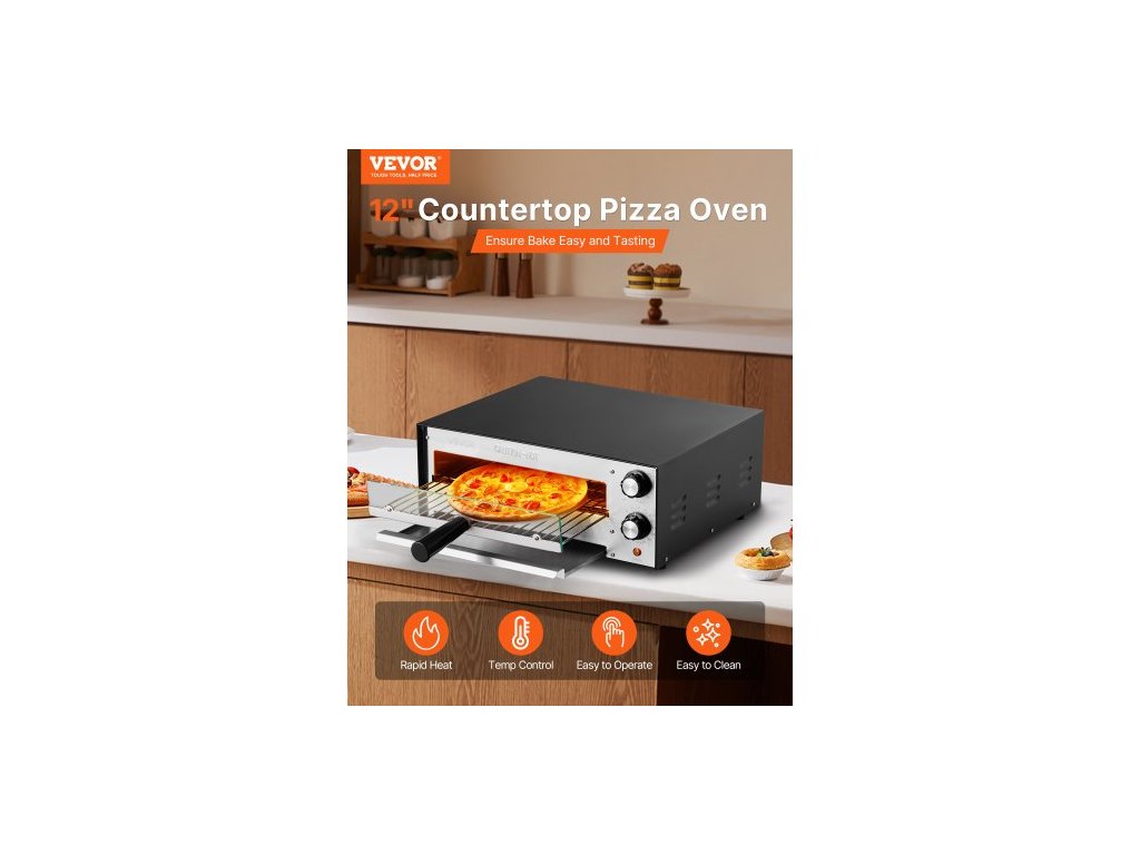 Elektrická pec na pizzu , 12palcová kuchyňská linka na pizzu, maximální teplota 572 °F, 1450W vnitřní přístroj na pizzu s časem a regulací teploty, vařič pizzy s dvojitou topnou trubicí, miska na drobky, pro večeře i domácí kuchyněRovnoměrné a rychlé pečení