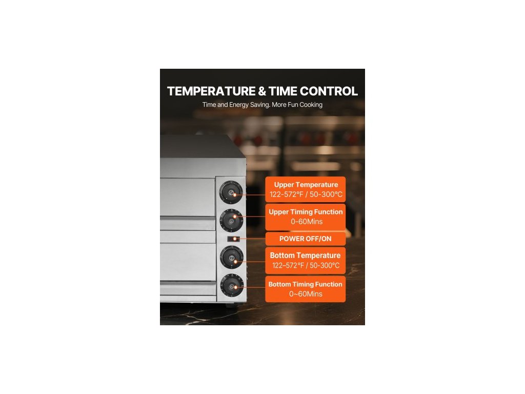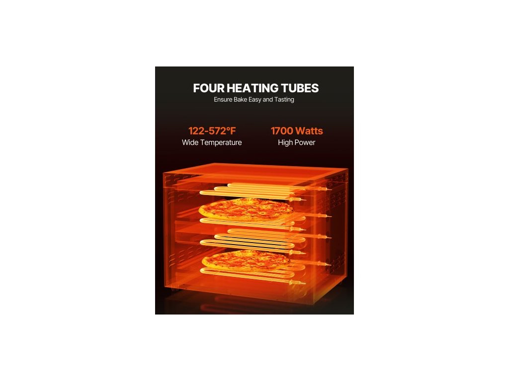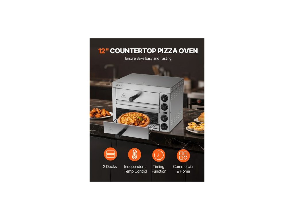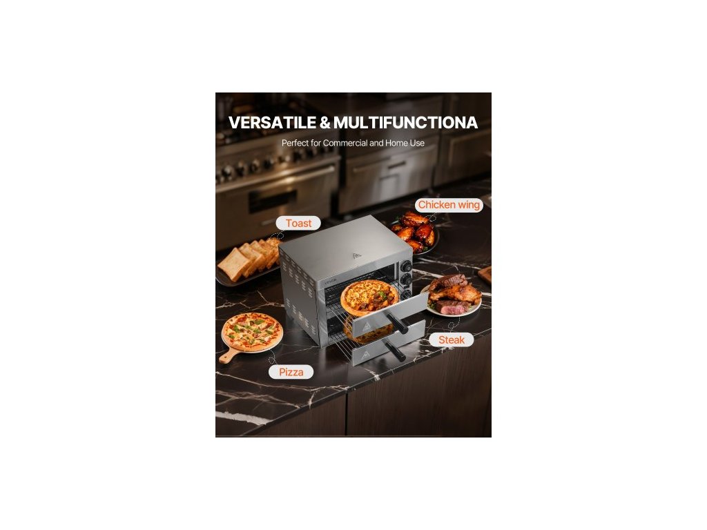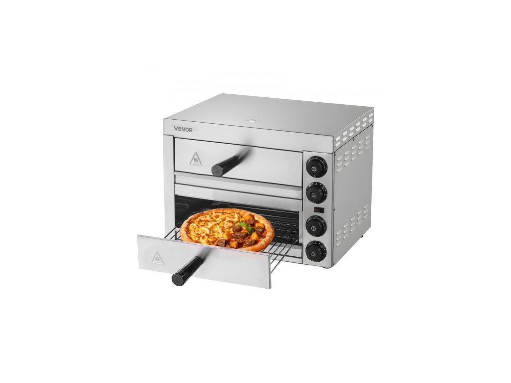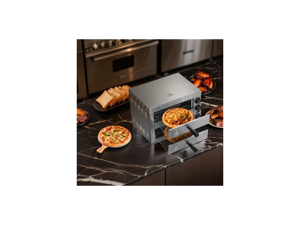 Elektrická pec na pizzu na kuchyňskou linku, 12 palců, 1700 W, s regulací teploty a časovačem 0–60 minut, technologií rovnoměrného pečení a snadno čistitelným plechem na drobky, ideální pro komerční i domácí kuchyněVysoce kvalitní elektrická pec na pizzu