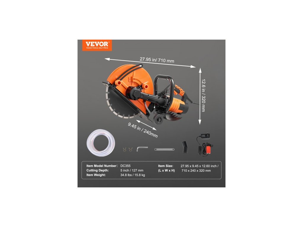 Elektrická pila na beton 14"/35,6 cm, mokrá/suchá pila s vodním čerpadlem a kotoučem