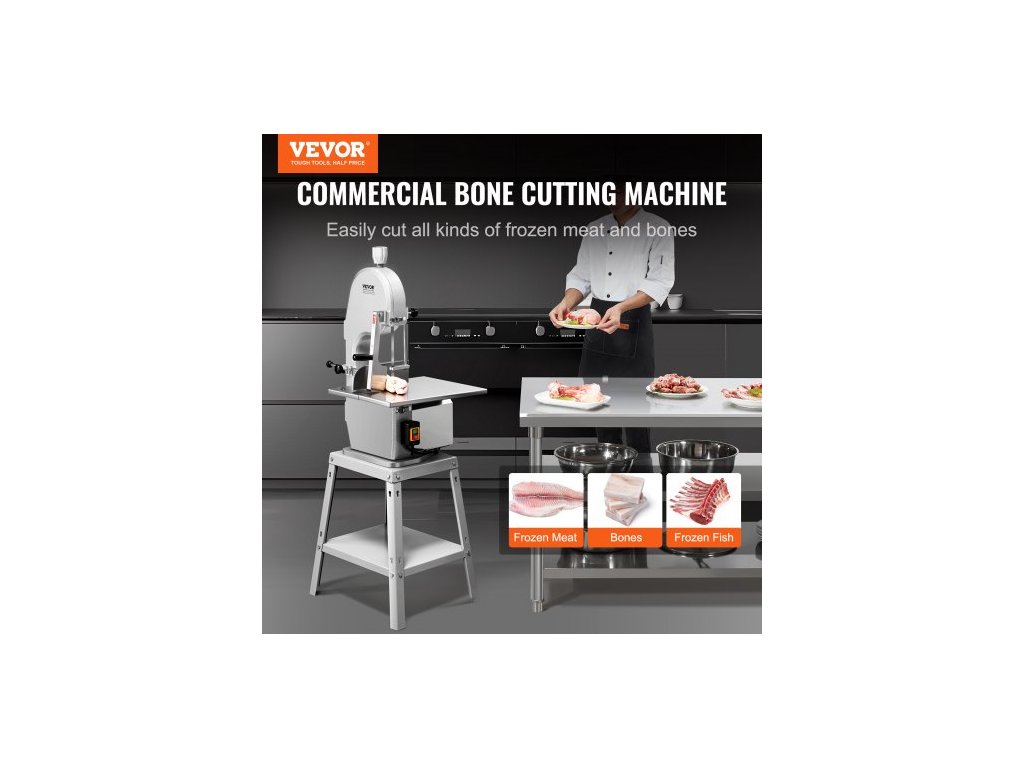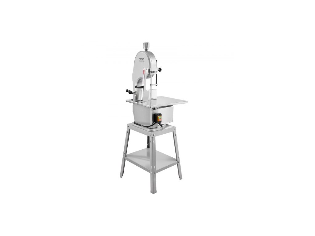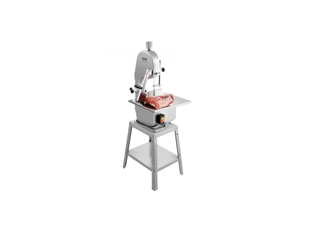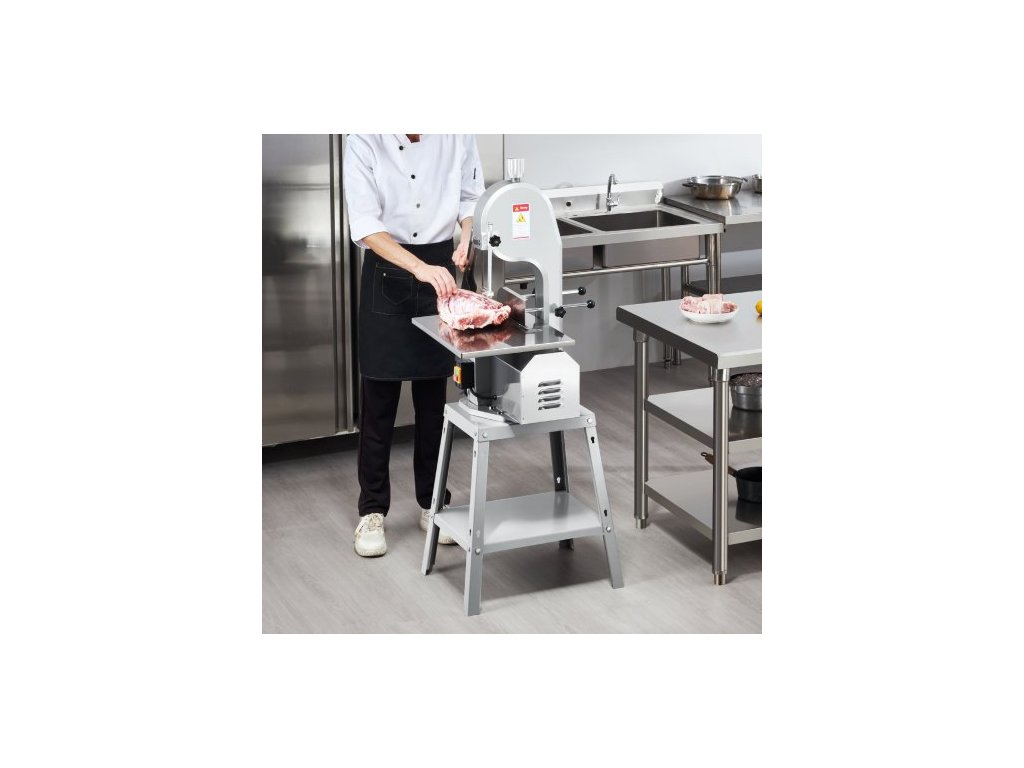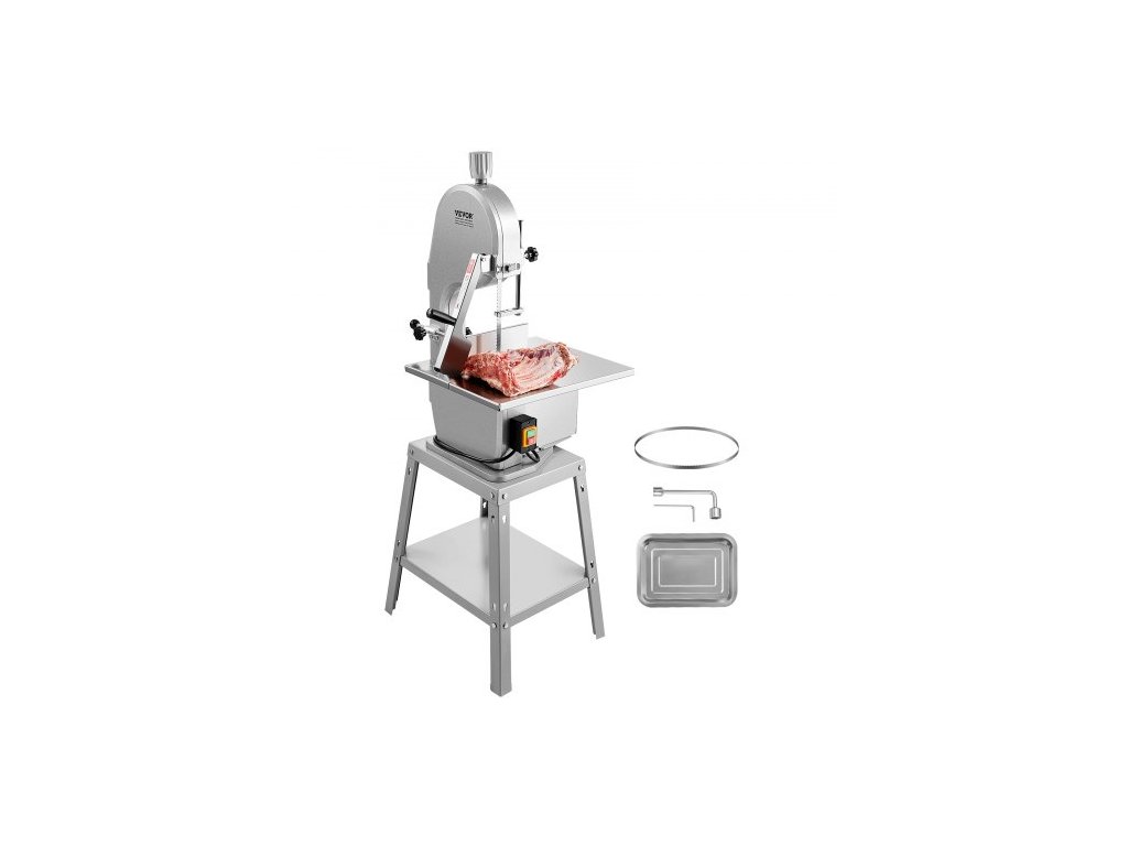 Elektrická pila na maso , vertikální řezačka z nerezové oceli 1800 W, pracovní stůl 48,5 cm x 38,5 cm, tloušťka řezu 18,9 cm, obsahuje 5 nožů pro krájení mraženého masa, vepřového, hovězího masa a žeber.