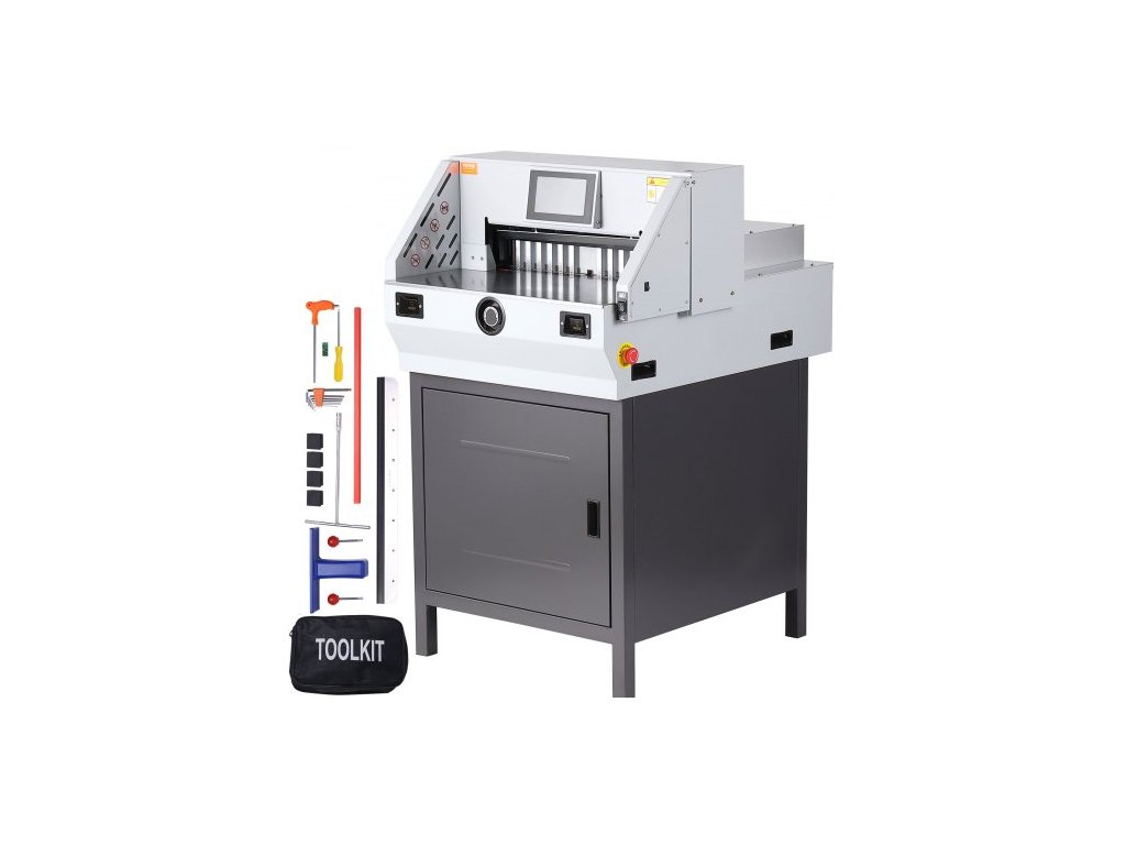 Elektrická řezačka papíru , šířka řezu 482,6 mm, tloušťka 80 mm, dotyková obrazovka, všestranné dotykové ovládání, vysoce přesné řezání, vícevrstvá bezpečnostní ochrana, pokyny k použití, vysoce kvalitní plně automatizovaná řezačka papíru, nezávislá funkce tlaku papíru, přesnost řezu: ±0,3 mm, maximální šířka řezu: 482,6 mm/19 palců, číslo modelu: E490T, maximální tloušťka řezu: 80 mm/3,14 palců, čistá hmotnost: 130 kg/286,6 liber, rozměry výrobku: 920x770x1240 mm/36,22x30,31x48,81 palcůDoplňkové parametry