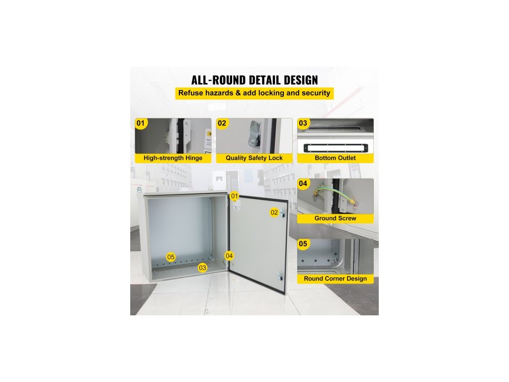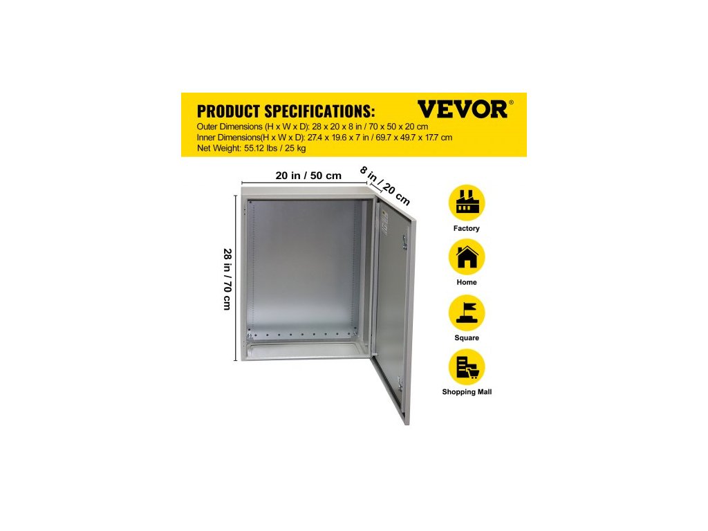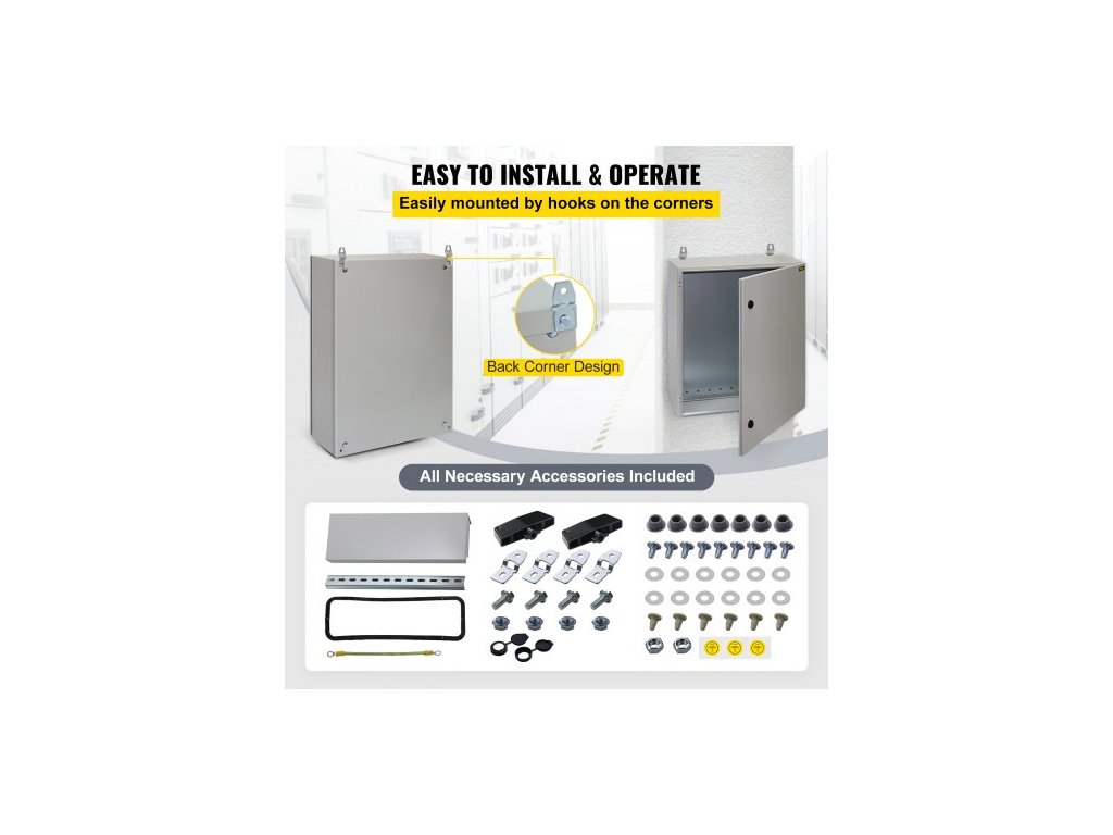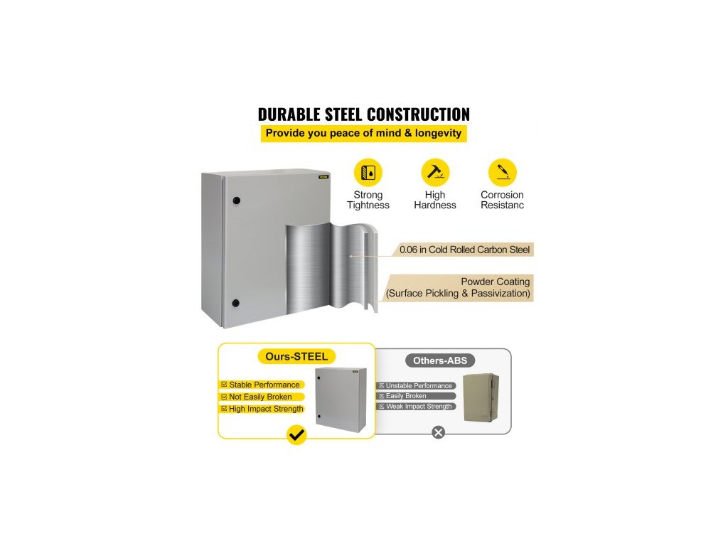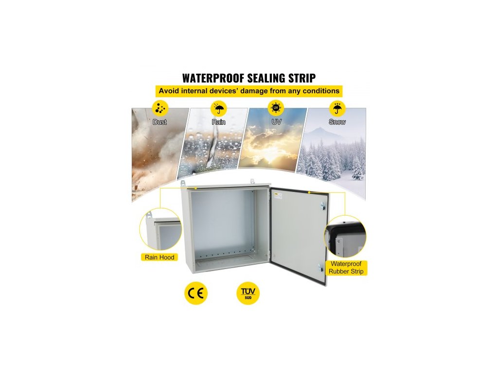 Elektrická skříň , 70x50x20 cm, venkovní skříň s certifikací UL NEMA 4, vodotěsná a prachotěsná rozvodná krabice z uhlíkové oceli válcované za studena s výklopnými závěsy s krytím IP65 pro venkovní a vnitřní použití, s ochranou proti deštiPrémiový ocelový materiál