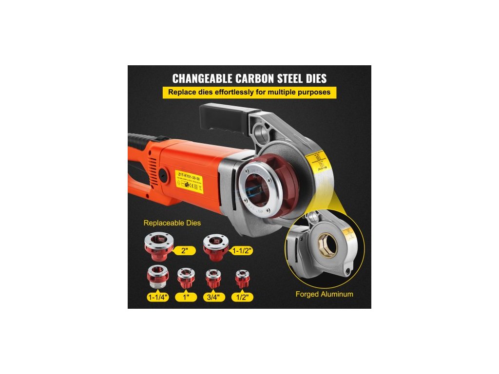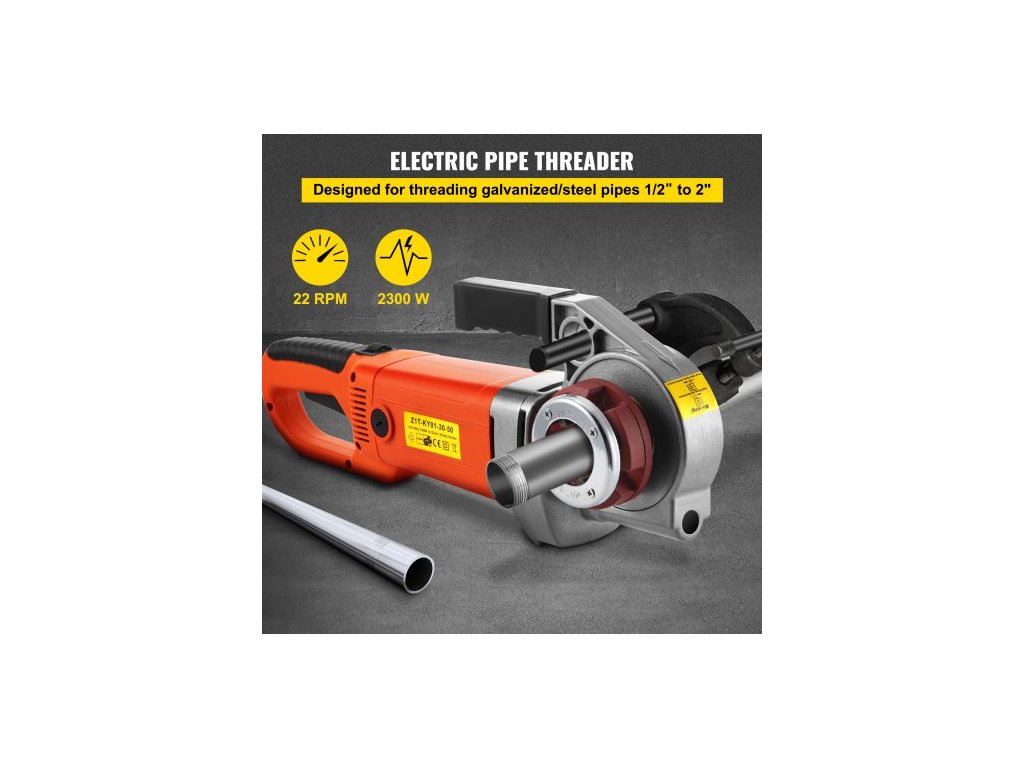 Elektrický závitořez , závitořez 2300 W, výkonná ruční sada s pohonem, závitořez 220 V, přenosný závitořez s 6 závitořeznými čelistmi 1,27–5,1 cmSíla motoru 2300 W
