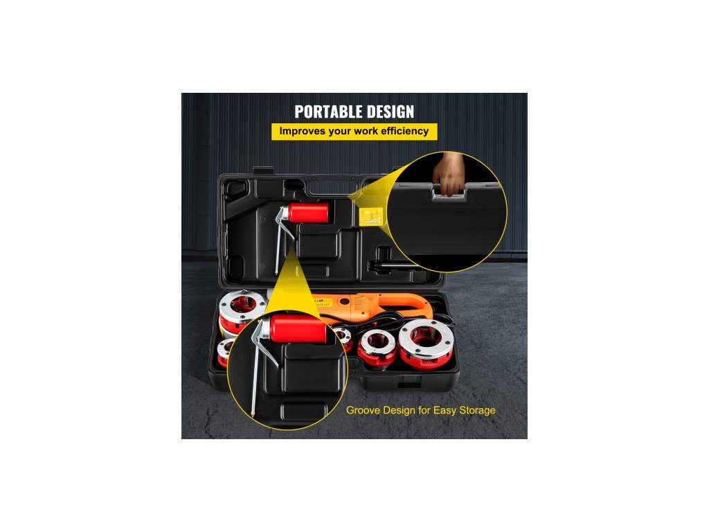 Elektrická závitořezná fréza , závitořezná fréza 2300 W, výkonná ruční pohonná sada, závitořezná fréza 220 V, přenosná závitořezná fréza se 6 závitořeznými čelistmi 1,27–5,1 cm