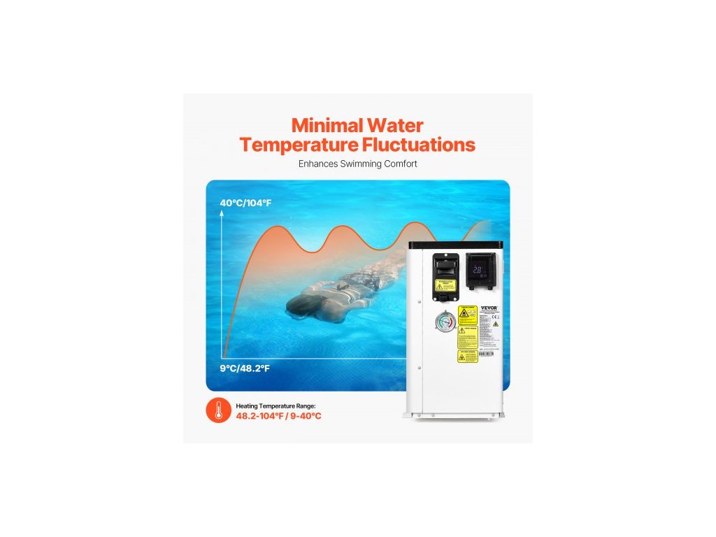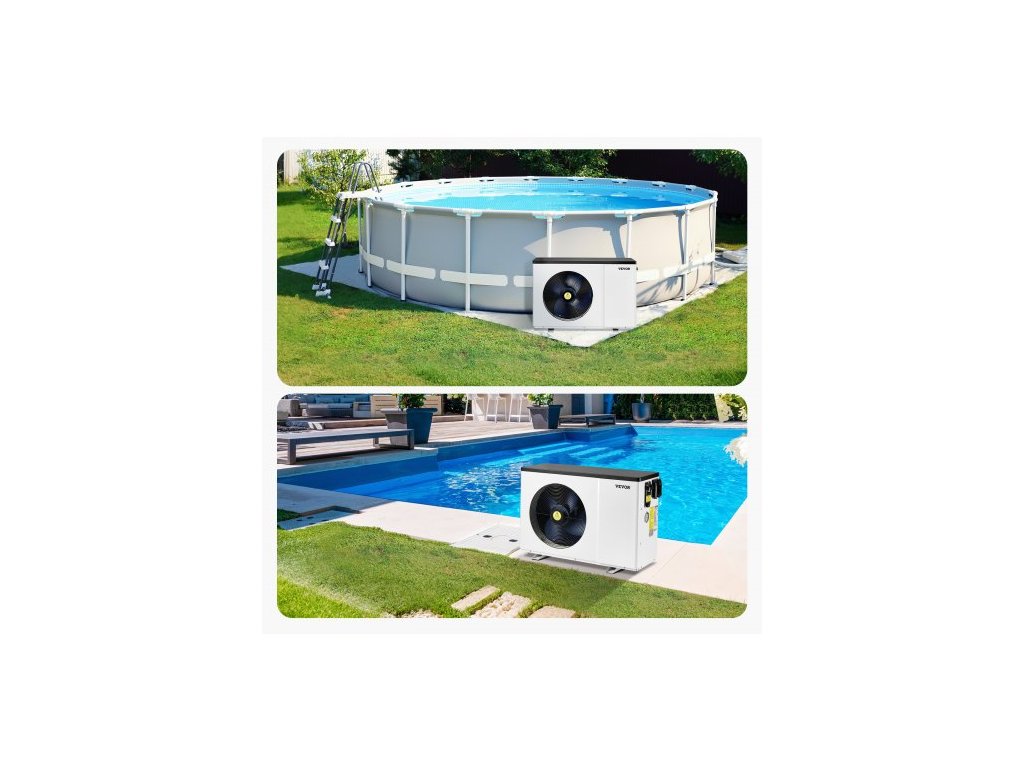 Elektrické bazénové tepelné čerpadlo , topný výkon 1,48–7,11 kW, energeticky úsporné ohřívače bazénů s proměnnou frekvencí pro nadzemní bazény o objemu 15–30 m³, ohřev a chlazení ohřívače bazénové vody AC220–240 V 50 HzVýkonné vytápění