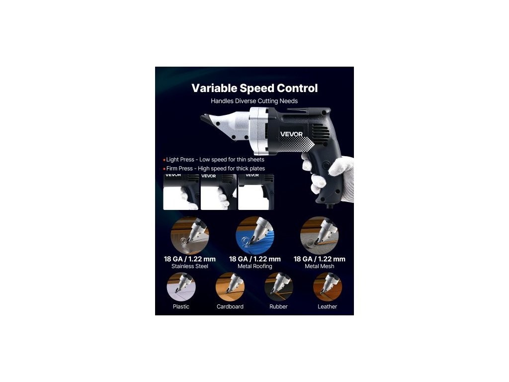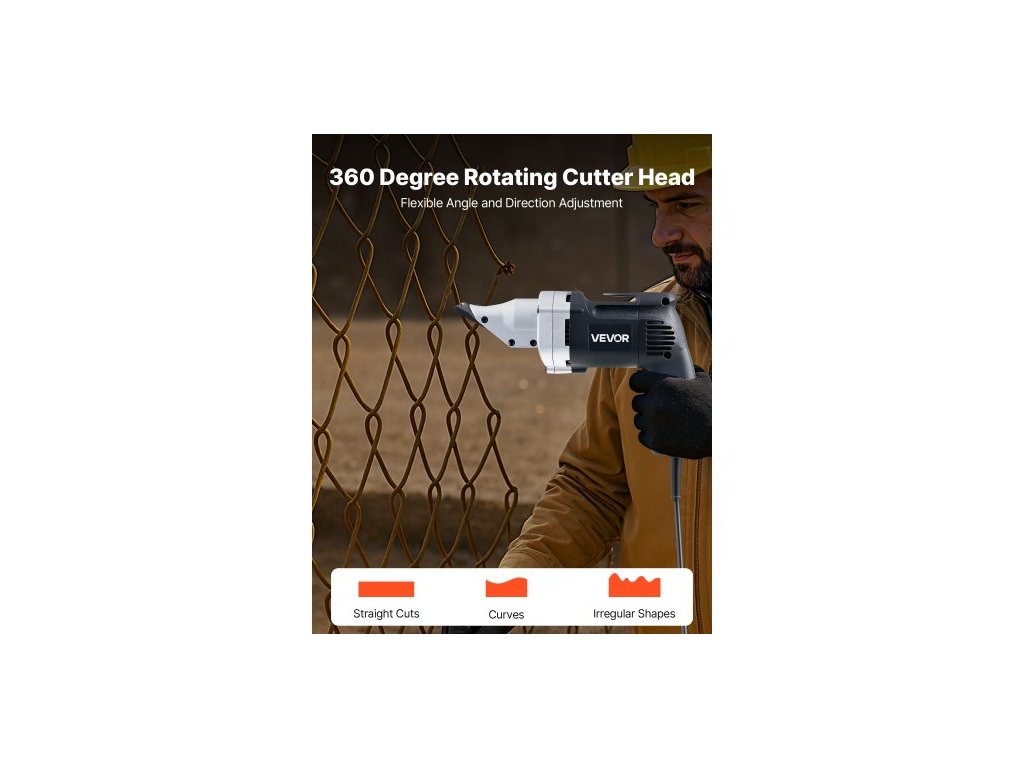 Elektrické nůžky na plech , 4,0A řezačka plechu s kabelem a otočnou hlavou o 360 stupňů, variabilní rychlost, plynulé řezání, čistý řez pro pozinkovanou ocel 1,22 mm, nerezovou ocel 1 mm, 2500 zdvihů za minutuVýkonný řezný výkon