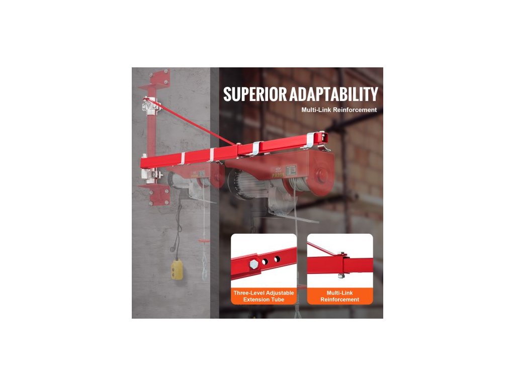 Elektrické zvedací rameno , maximální nosnost 600 kg, otočné rameno elektrického držáku zvedáku, ocelový rám zvedáku, otočné rameno pro lešení o 180°, naviják pro zvedání, dílna, garáž