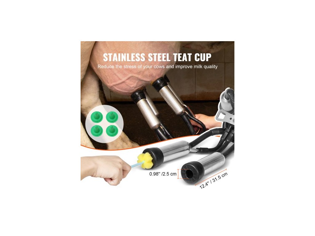 Elektrický dojicí stroj pro krávy, dojicí zařízení, 25 l, nerezová ocel 304, dlouhotrvající úleva, robustní kolečka, snadné ovládání, silikonový strukový násadec, snadné přemisťování, snadné čištění, frekvence pulzací: 60–80krát/min, název modelu: 9JYZ-1, otáčky motoru: 1680 ot./min, objem: 25 l, vnitřní průměr hadice: 1,2 cm, materiál: nerezová ocel 304, potravinářský silikon, podtlak: 45–50 kPa, vnější průměr hadice: 1,7 cm, hmotnost: 27,9 kgDoplňkové parametry