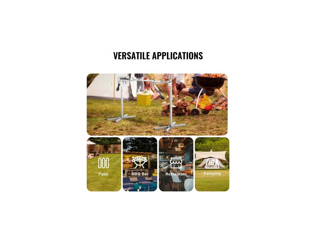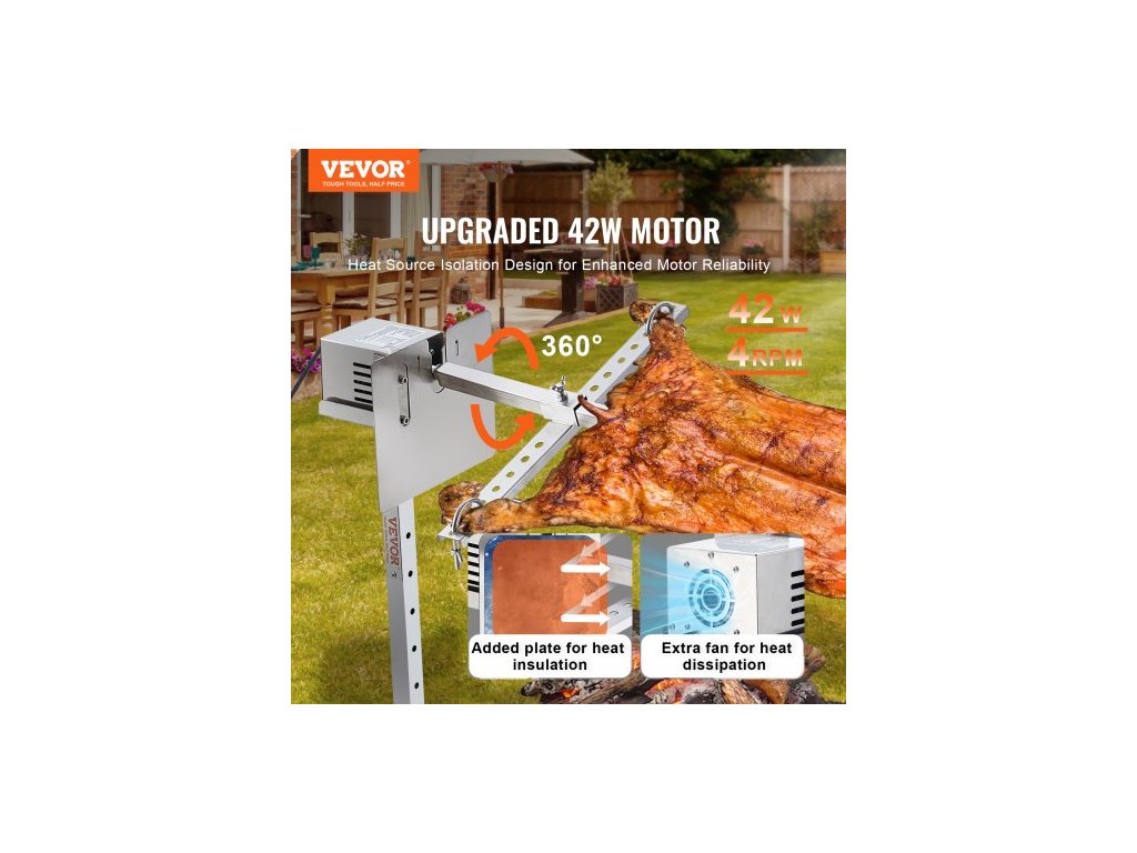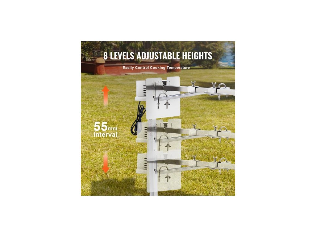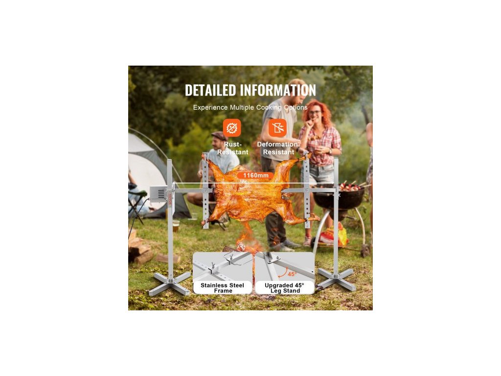 Elektrický gril s rožněm 116,8 cm, sada na grilování z nerezové oceli, 40,8 kg, prase, jehněčí