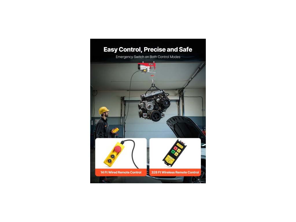 Elektrický jeřábový naviják 997,9 kg 9997,4 cm bezdrátový a 426,7 cm kabelový dálkový ovladač