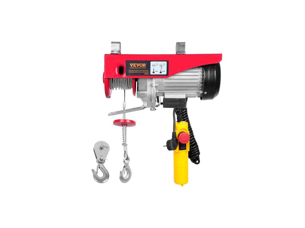 Rychlost zdvihu (jedno lano): 33 ft/min, Napětí: 220 V, Nosnost: 1320 lbs / 600 kg, Hmotnost výrobku: 36,16 lbs / 16,4 kg, Výkon motoru: 1150 W, Velikost kabelu: Φ4 mm * D12 m (19 pramenů), Rozměry výrobku: 15,4 x 5,9 x 7,1 palce / 390 x 150 x 180 mm, výška zdvihu (jedno lano): 12 m