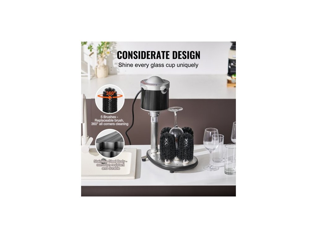 Elektrický komerční mycí stroj na sklo , 5kartáčový čistič barového skla, stroj na čištění vinných sklenic s výkonem 600 šálků/hodinu, myčka barového skla na šampaňské, pivní kelímky a hrnky, ideální pro bary a kavárny