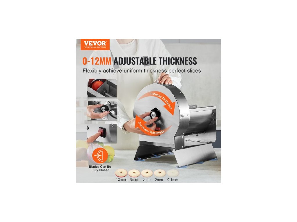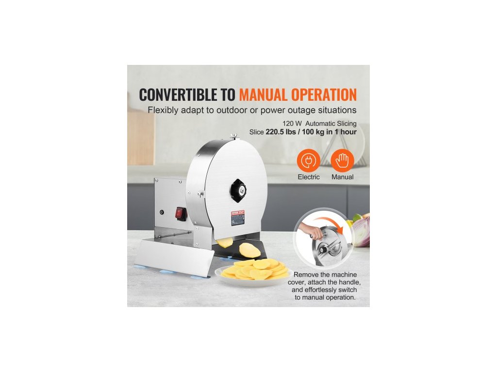 Elektrický kráječ zeleniny , nastavitelný komerční kráječ o tloušťce 0-0,5"/0-12 mm, přestavitelný na ruční, nerezový kráječ potravin, na brambory, citrony, rajčata a jablkaDosáhněte rovnoměrných tloušťek plátků