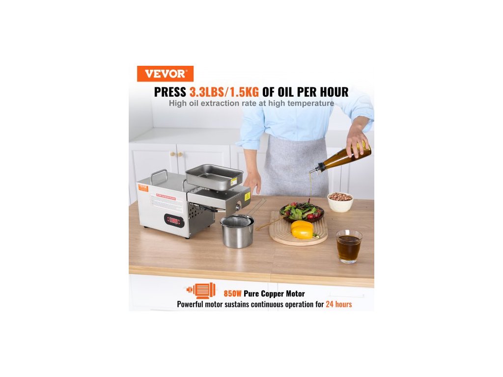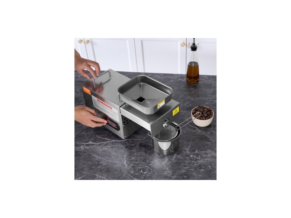 Elektrický lis na olej , 850W nerezový extraktor oleje, nastavitelná teplota 0-300℃ / 32 - 572 ℉, horký lis na olejové expelery pro lisování arašídů, sezamových semínek, řepky, čajových semínek