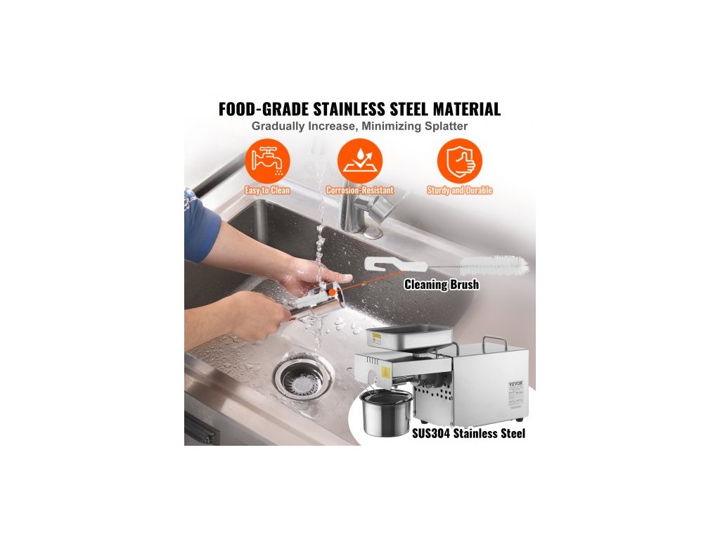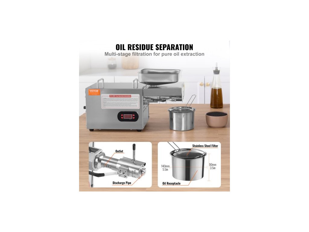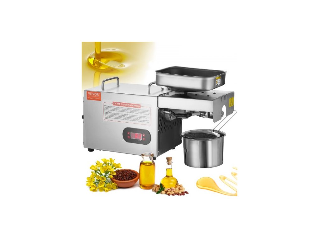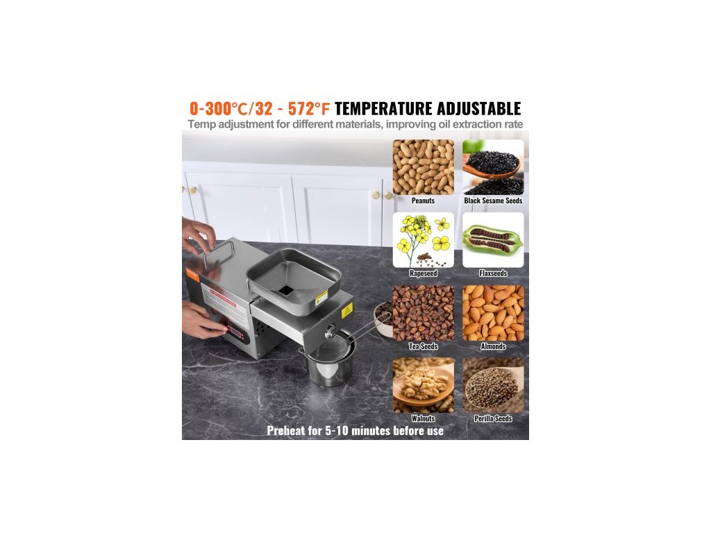 Elektrický lis na olej , 850W nerezový olejový extraktor, nastavitelná teplota 0-300℃ / 32 - 572 ℉, olejový expeler za horka pro lisování arašídů, sezamových semínek, řepky, čajových semínekLis na olej