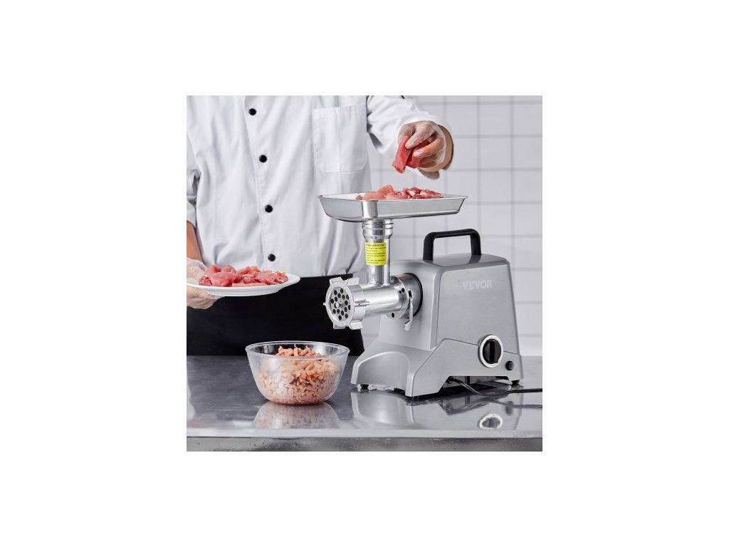 Elektrický mlýnek na maso , kapacita 5 lb/min, 575 W (max. 800 W) Průmyslový mlýnek na maso s nožem, mlecím kotoučem, nožem na nádivku klobás a 3 trubicemi, hliníkový profesionální mlýnek na maso