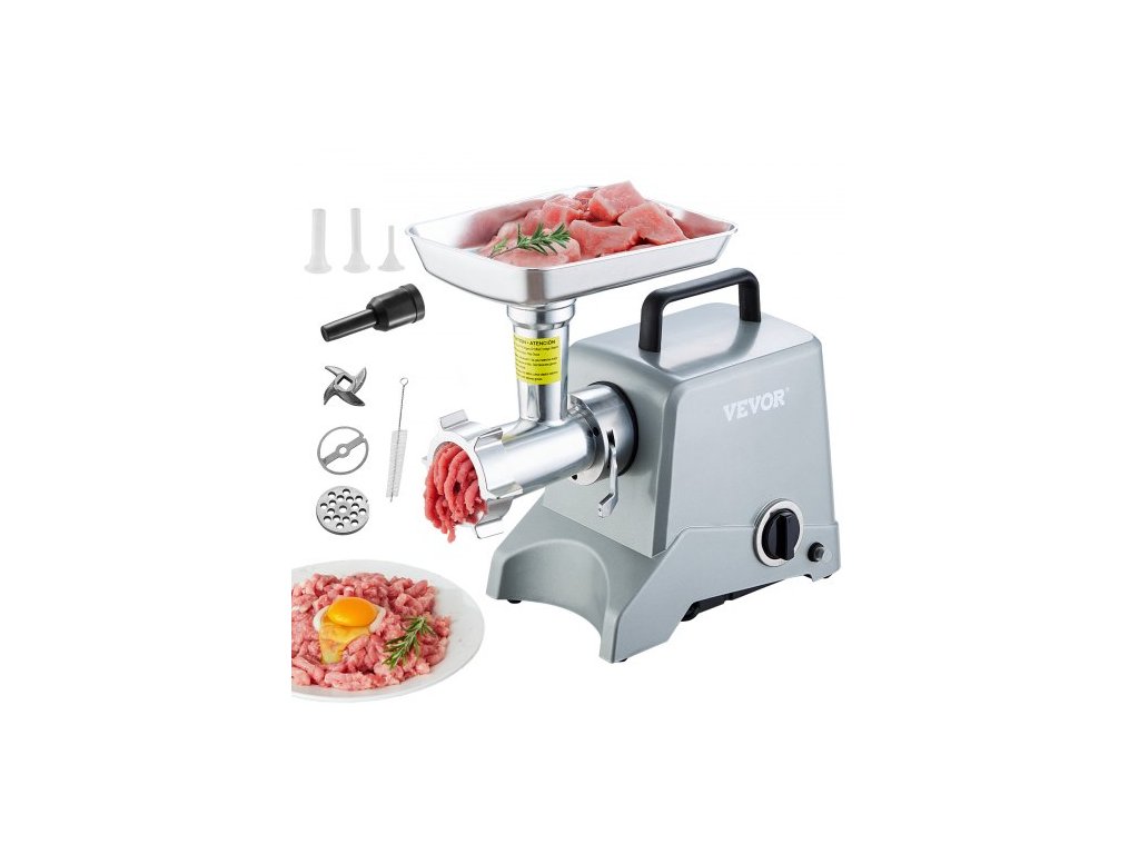 Elektrický mlýnek na maso , kapacita 5 lb/min, 575 W (max. 800 W) Průmyslový mlýnek na maso s nožem, mlecím talířem, nožem na nádivku klobás a 3 trubicemi, hliníkový komerční mlýnek na masoRychlé a výkonné mletí