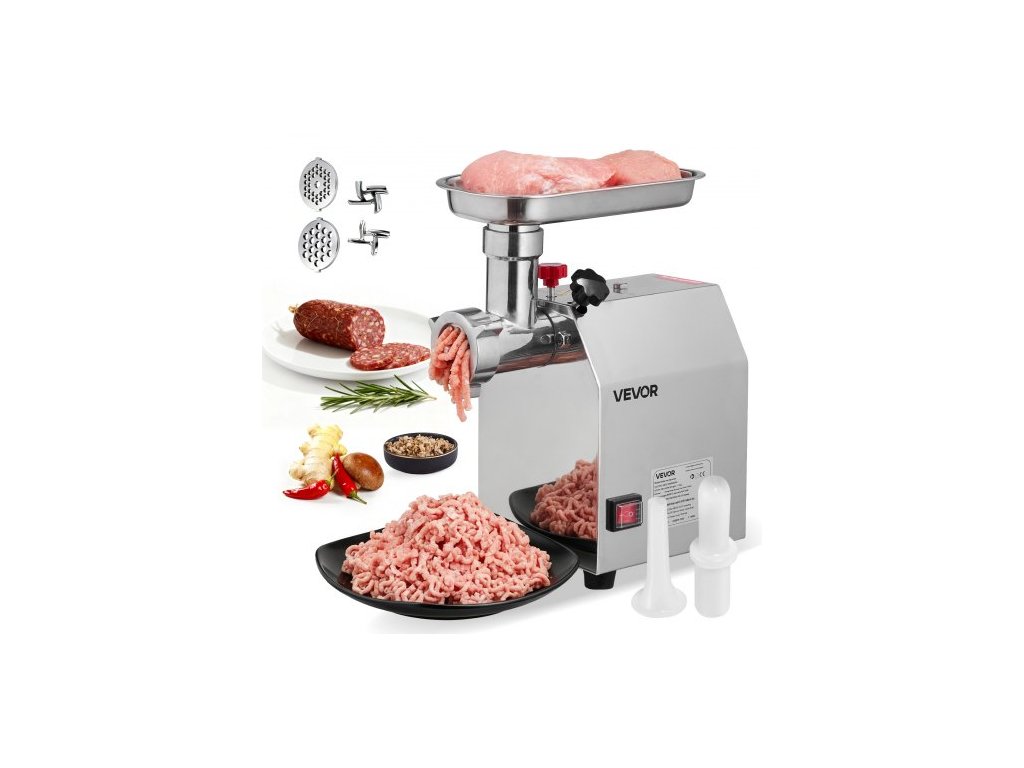 Elektrický mlýnek na maso pro komerční použití, kapacita 2,3 kg/min, průmyslový mlýnek na maso č. 8 se 2 noži z nerezové oceli, 2 mlecími deskami, výkonný stroj na klobásy o výkonu 600 W, do kuchyně a restaurace