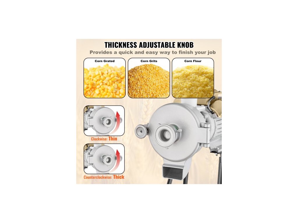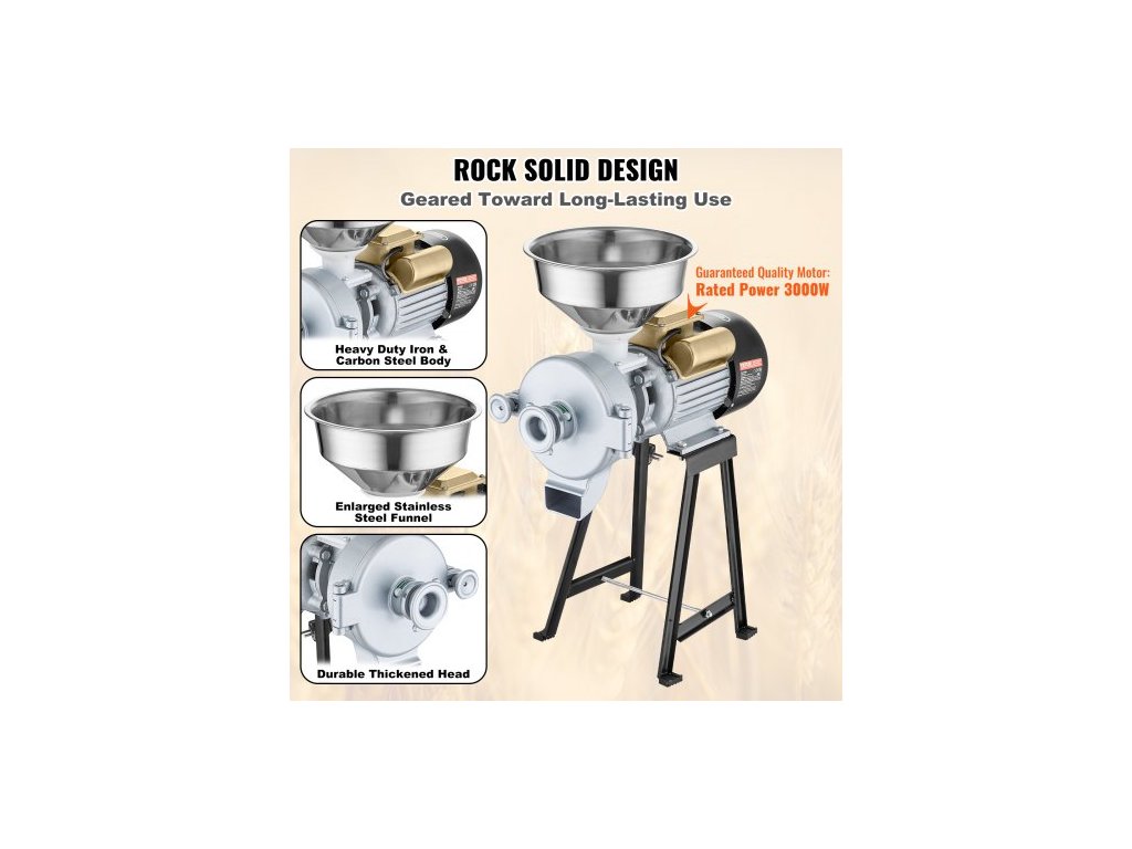 Elektrický mlýnek na obilí , mlýnky na koření 3000 W, komerční mlýnek na kukuřici s trychtýřem, stroj na mletí s nastavitelnou tloušťkou, vysoce výkonný mlýnek na krmnou mouku, mlýnky na pšenici, suchý a mokrý mlýnekKomerční mlýnek na obilí