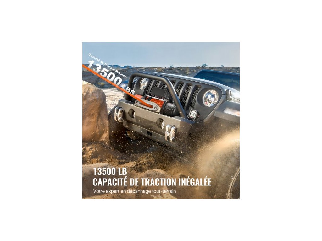 Elektrický naviják pro nákladní automobily, 6123,5 kg, syntetické lano, vodotěsné dálkové ovládáníElektrický naviják pro nákladní automobily