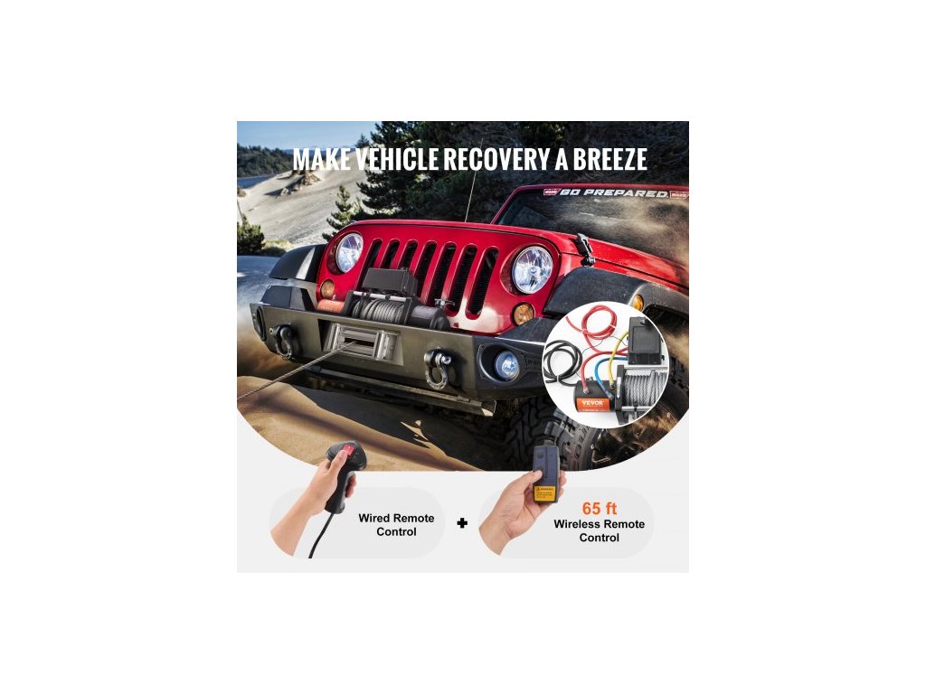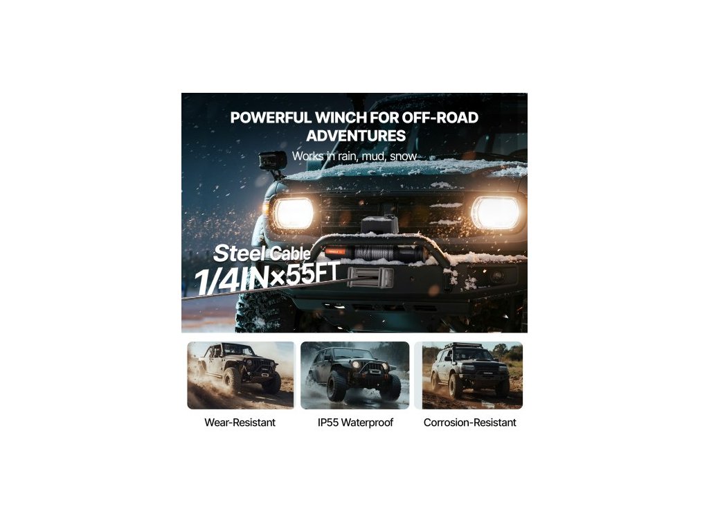 Elektrický naviják 8 164,7 kg Ocelové lanko Voděodolné dálkové ovládání IP65