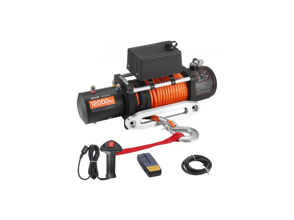 Jmenovitá tahová síla: 12000 lbs / 5400 kg, Specifikace lana: Syntetické lano, průměr: Φ0,36 palce / 9,1 mm; Délka: 23 m, Hlavní materiály: Hliníková slitina, ocel, plast, Krytí: IP55, Číslo modelu položky: S12000, Specifikace motoru: 12V DC, 5,5 HP motor z čisté mědi, Převodový poměr: 265:1, Rozměry položky: 53,7 x 16 x 28 cm (s ovládací jednotkou), Režimy ovládání: Bezdrátové a kabelové dálkové ovládání, Čistá hmotnost: 22,9 kg