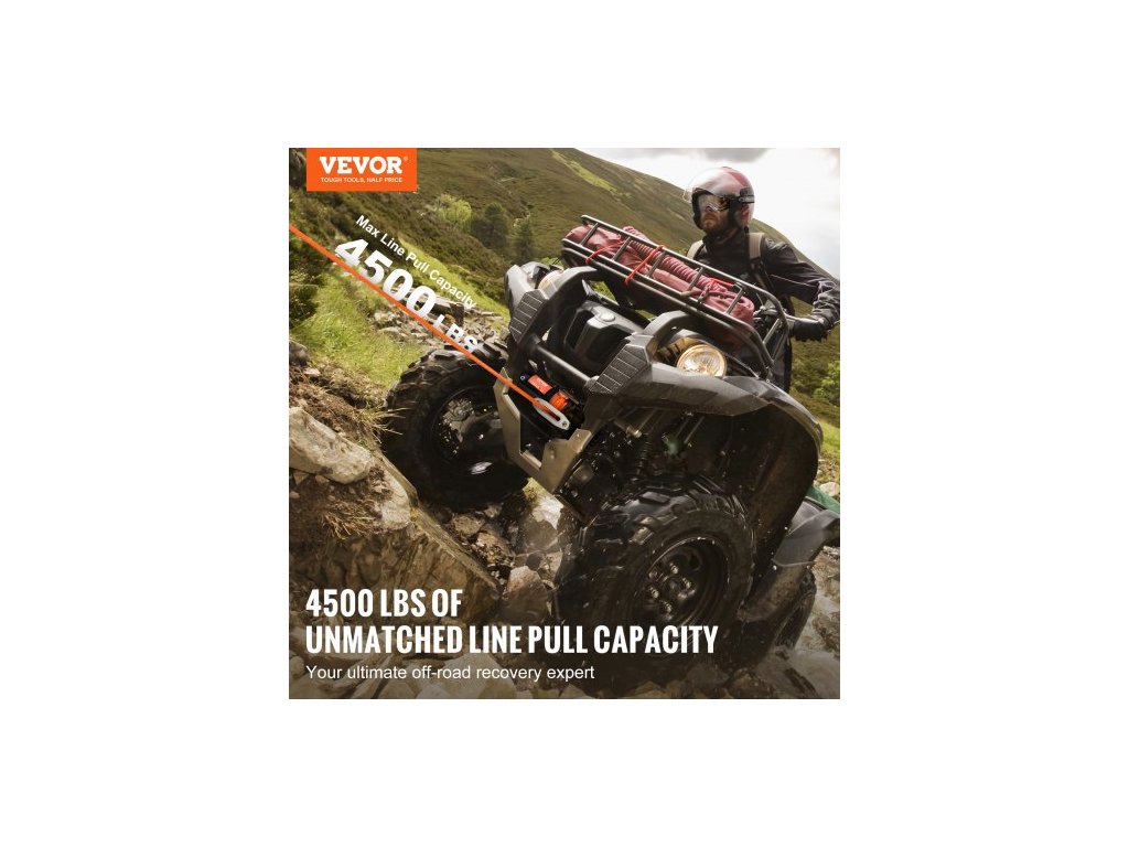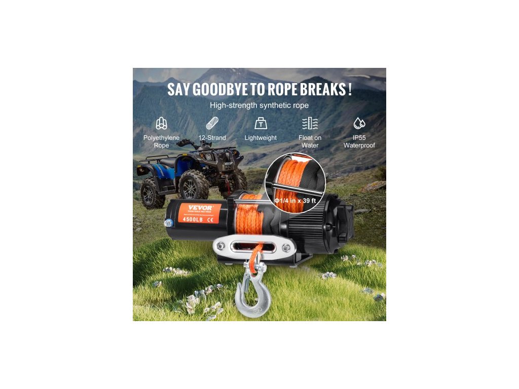 Elektrický naviják pro čtyřkolky, UTV, 2041,2 kg, syntetické lano, vodotěsné, dálkové ovládání