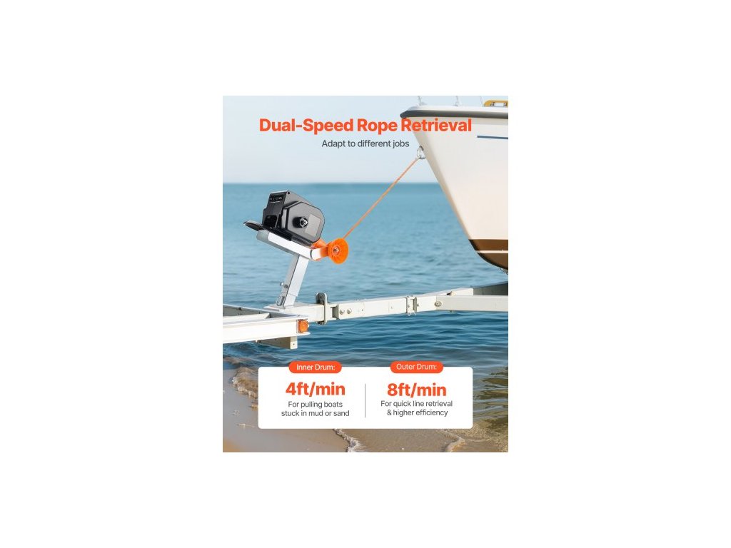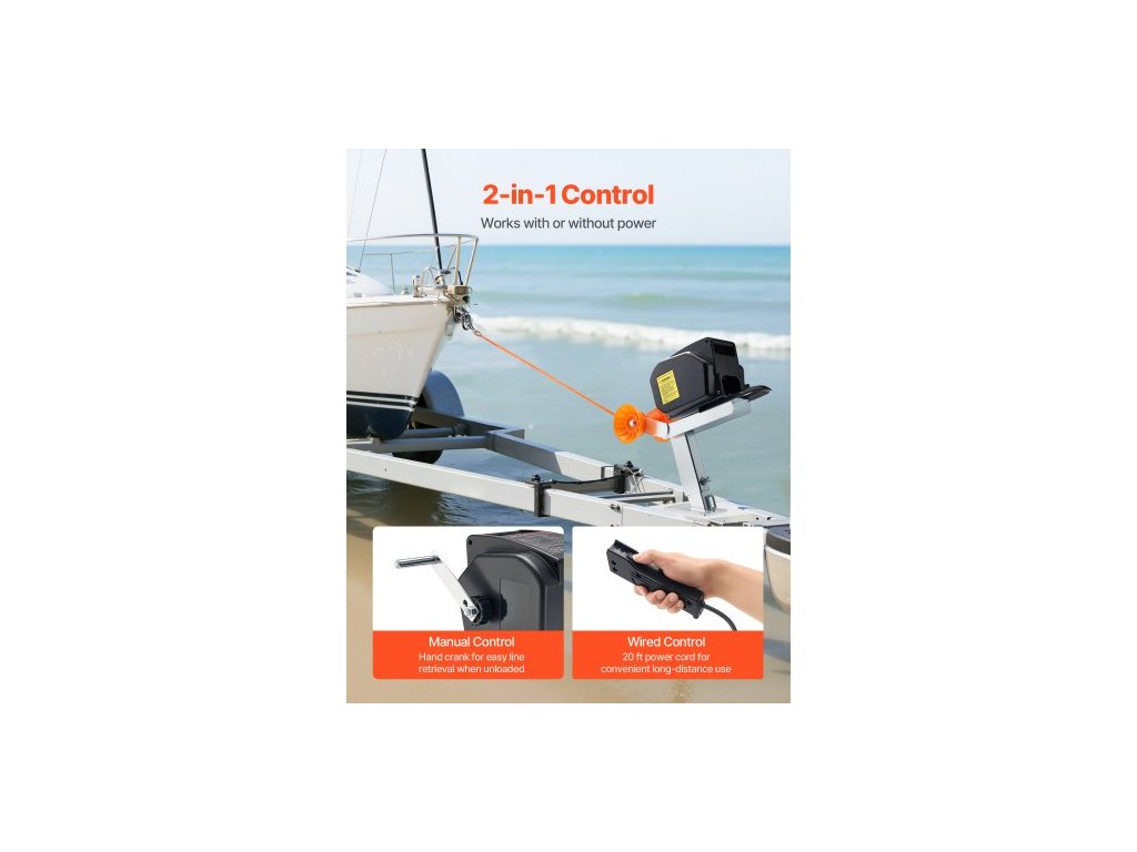 Elektrický naviják pro lodě, 12 V DC 300 W, oboustranný elektrický naviják pro přívěsy pro lodě do 900 kg, ovládání při zapnutí, vypnutí a volnoběh pro lodě s kabelovým dálkovým ovládáním a ruční klikou