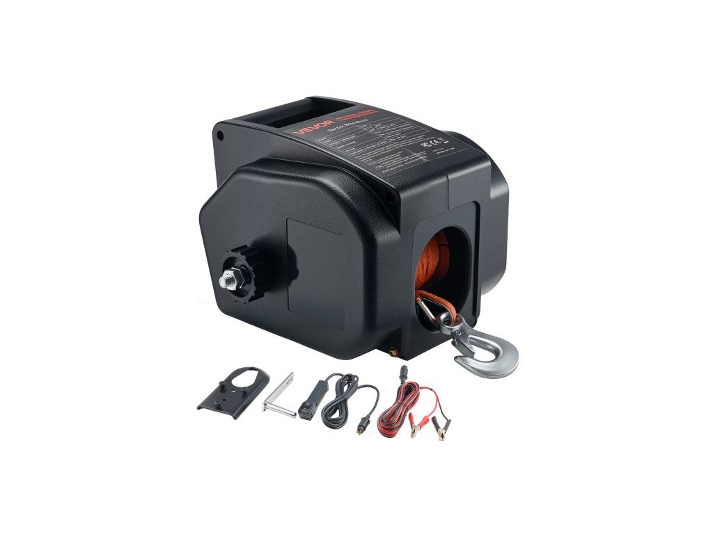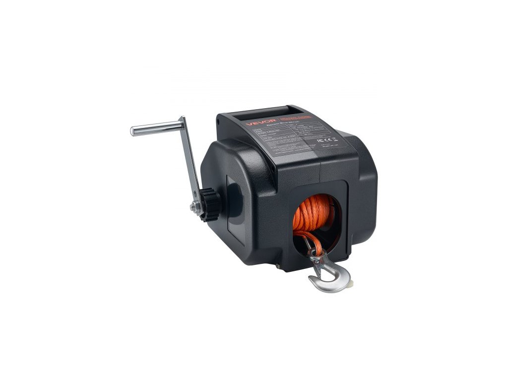 Elektrický naviják pro lodě, 12 V DC 300 W, reverzibilní elektrický naviják pro lodě do 900 kg, ovládání zapínáním, vypínáním a volným chodem pro lodě s kabelovým dálkovým ovládáním a ruční klikouElektrický naviják pro lodní přívěs