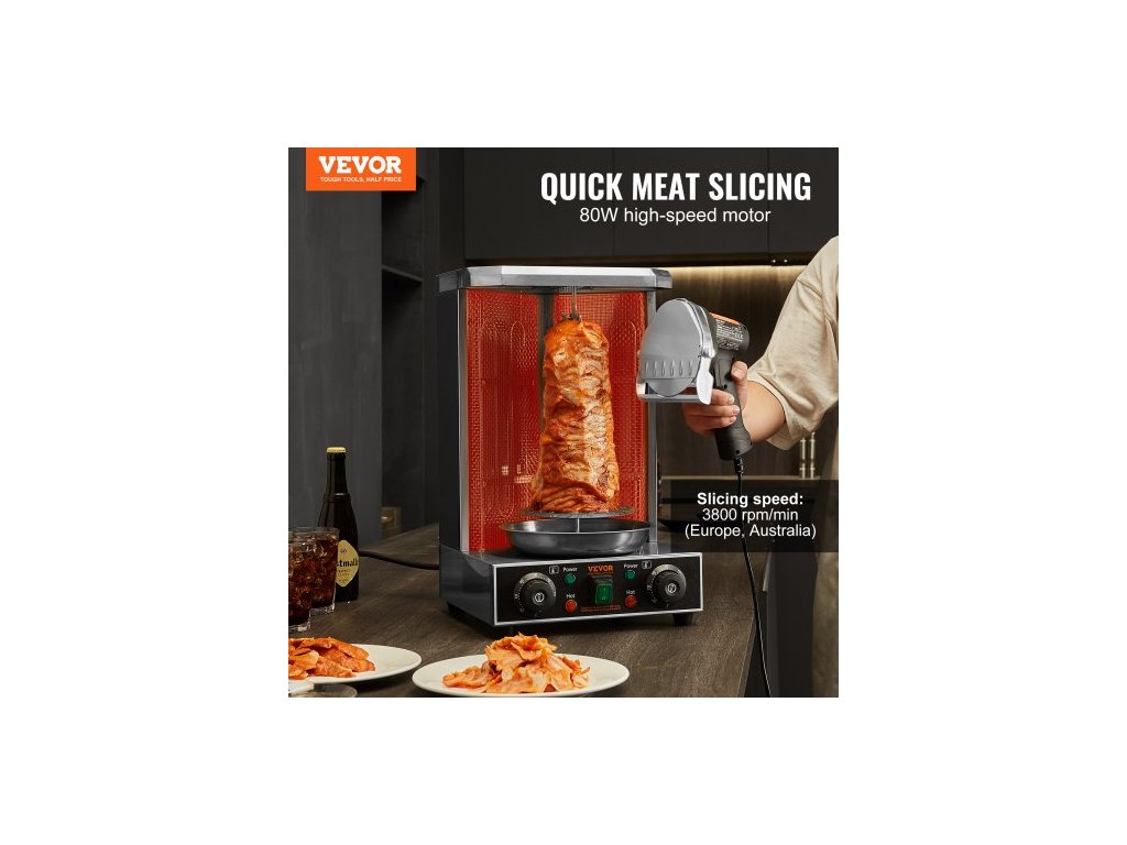 Elektrický nůž Shawarma, profesionální nůž na turecký kebab 80 W, komerční gyro řezačka z nerezové oceli, kráječ masa na döner kebab se 2 čepelemi, průměr čepele Φ4"/100 mm, nastavitelná tloušťka 0-8 mmVysoká účinnost