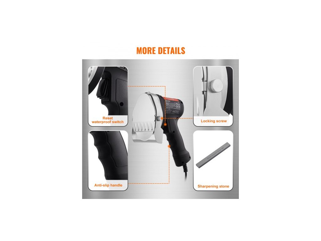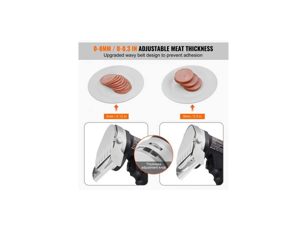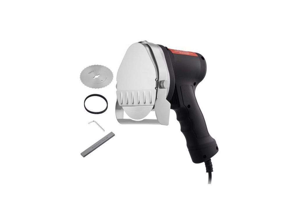 Průměr čepele: 100 mm / 4 palce,Materiál čepele: 5Cr15mov,Hlučnost: <80 dB,Rozměry: 190 x 130 x 190 mm / 7,5 x 5,1 x 7,5 palce,Rozsah nastavení tloušťky: 0-8 mm / 0-0,3 palce,Číslo modelu: KS-100E-1,Čistá hmotnost: 1,5 kg / 3,3 lbs,Příkon: 80 W