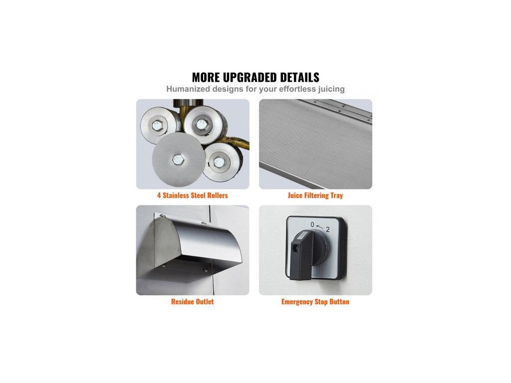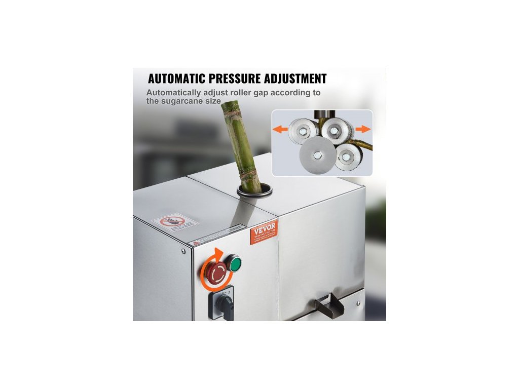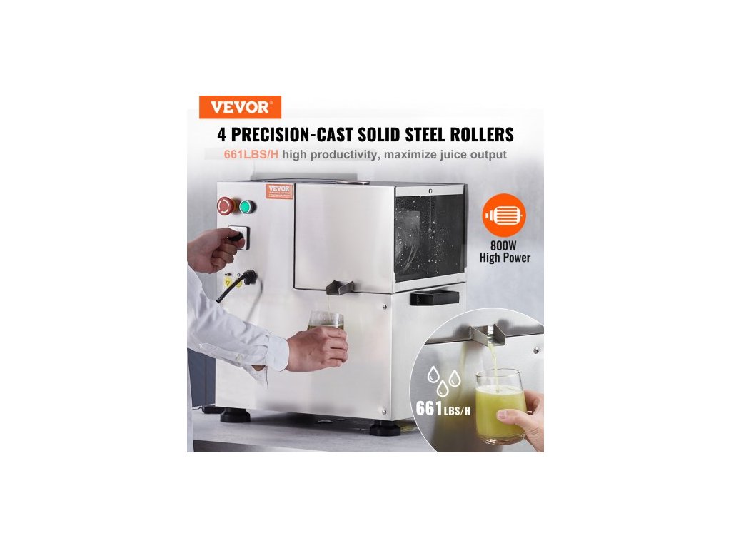 Elektrický odšťavňovač na cukrovou třtinu , 800W odšťavňovač na cukrovou třtinu s vysokým výkonem 661 LBS/H, 4 válce z nerezové oceli, automatické nastavení tlaku válců, lis na šťávu z cukrové třtiny pro domácnosti/komerční použití