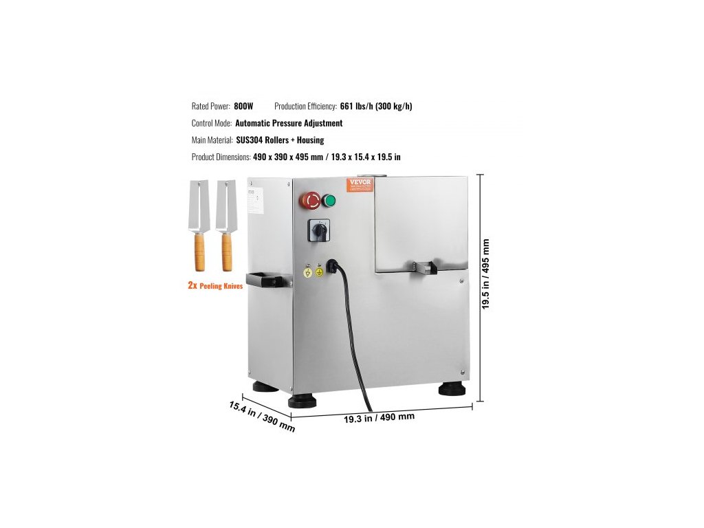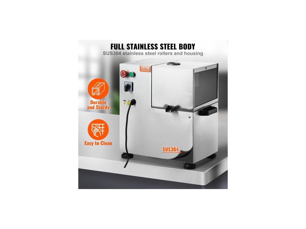 Účinnost výroby: 661 liber/h (300 kg/h),Režim ovládání: Automatické nastavení tlaku,Číslo modelu položky: YF-L100,Jmenovitý výkon: 800 W,Čistá hmotnost: 123,7 liber / 56,1 kg,Hlavní materiál: Válečky SUS304 + pouzdro
