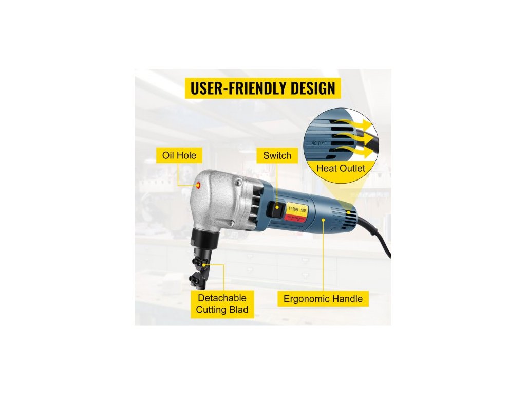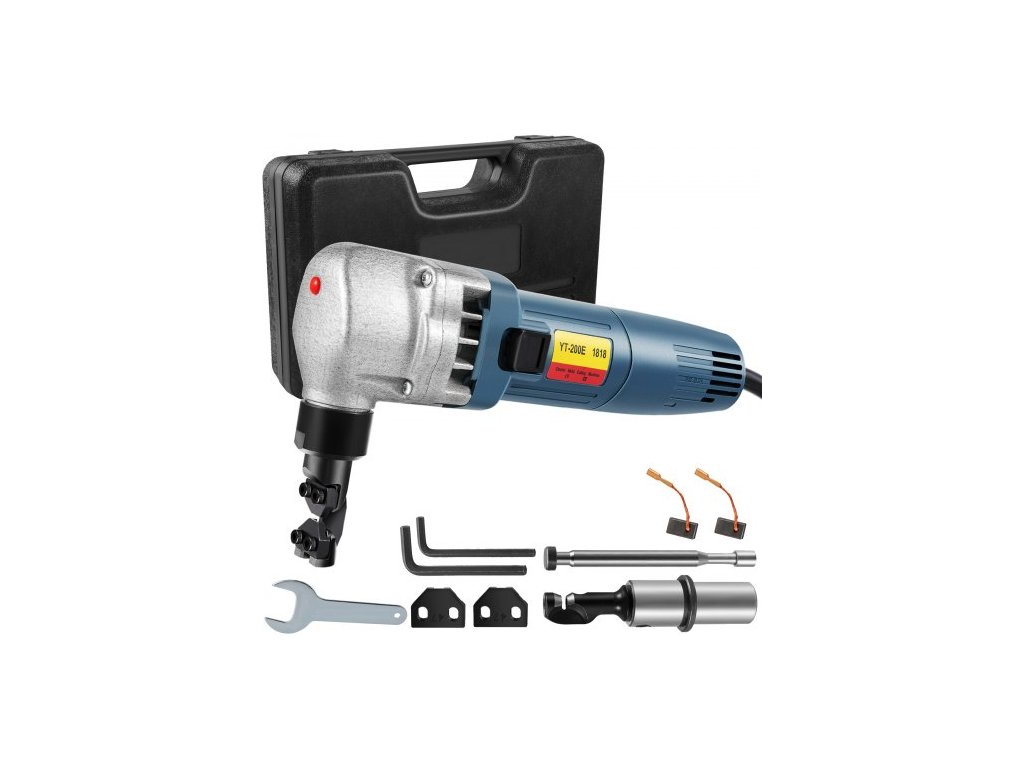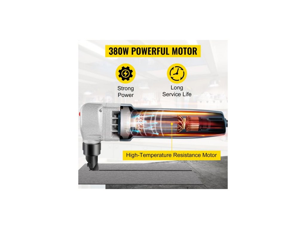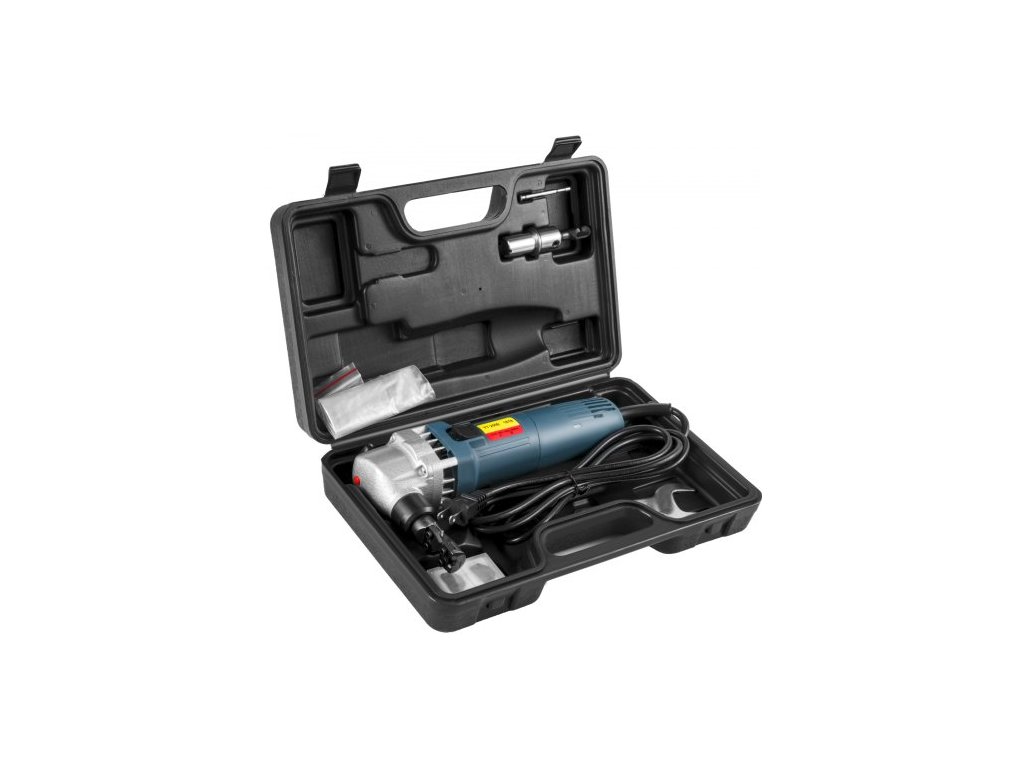 Elektrický ostřihovač plechu 380W, ostřihovač plechu, řezačka plechu 1800 ot./min, vysokorychlostní rotor, ostřihovač plechu 220V s vyměnitelnými čepelemi, úložný kufřík, ostřihovač plechu pro řezání nerezové oceli, hliníku a plastu