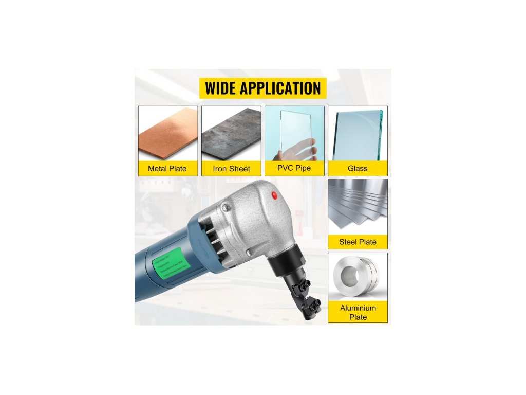 Elektrický ostřihovač plechu 380W, ostřihovač plechu, řezačka plechu, vysokorychlostní rotor 1800 ot./min., ostřihovač plechu 220V s vyměnitelnými čepelemi, úložný kufřík, ostřihovač plechu pro řezání nerezové oceli, hliníku a plastuRychlé a plynulé řezání