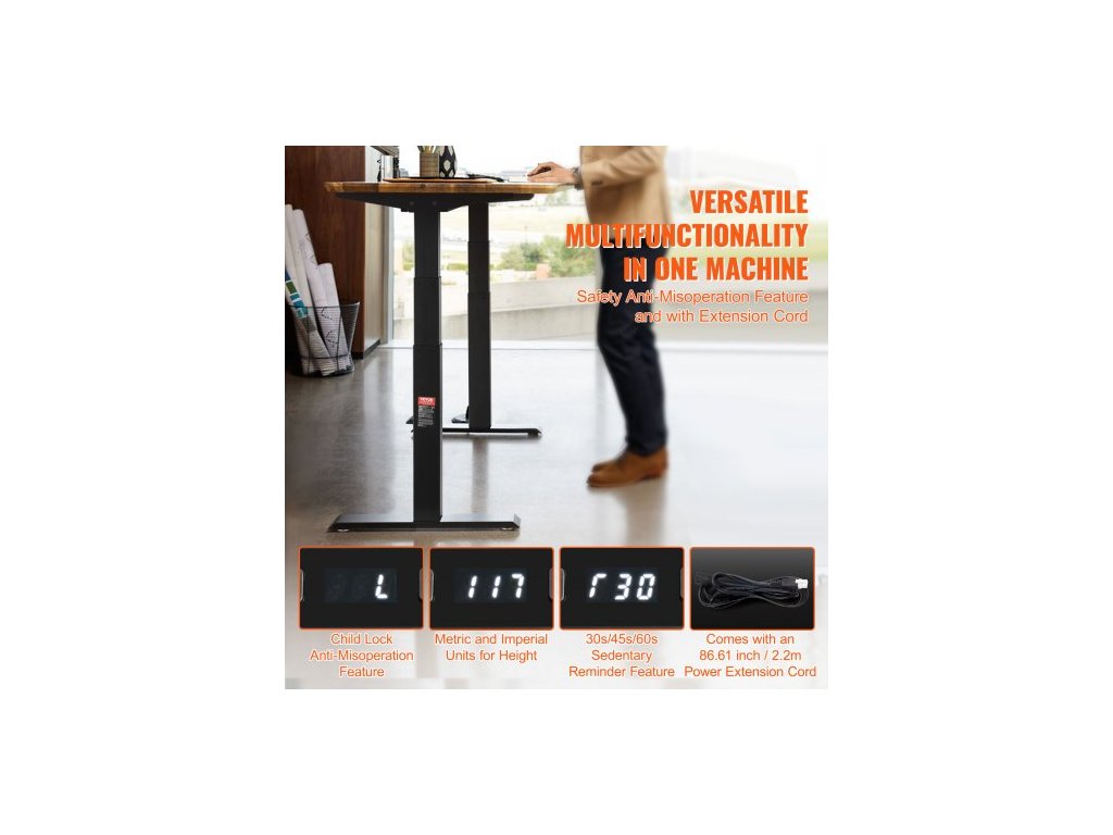 Nosnost: ≥125 kg, Dětská pojistka: Ano, Hlučnost: Méně než 50 (dB), Převod jednotek: Ano, Rozsah zdvihu výšky: 65–129 cm, Rozměry produktu (minimální): 110 x 58 x 64 cm, Nastavitelná rychlost zdvihu: ≥3,2 (cm/s), Funkce paměti poloh: 3 nastavení poloh, Model: ZW-18, Rozsah prodloužení délky: 43,31–70,08 palce / 110-178 cm, Kompatibilita s velikostí stolního počítače: 47,24 - 82,7 palce / 120-210 cm, Čistá hmotnost: 21,7 kg / 47,84 lbs, Hlavní materiál: Za studena válcovaná uhlíková ocel Q235A