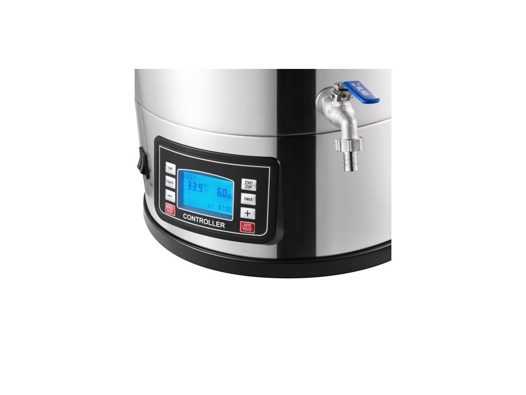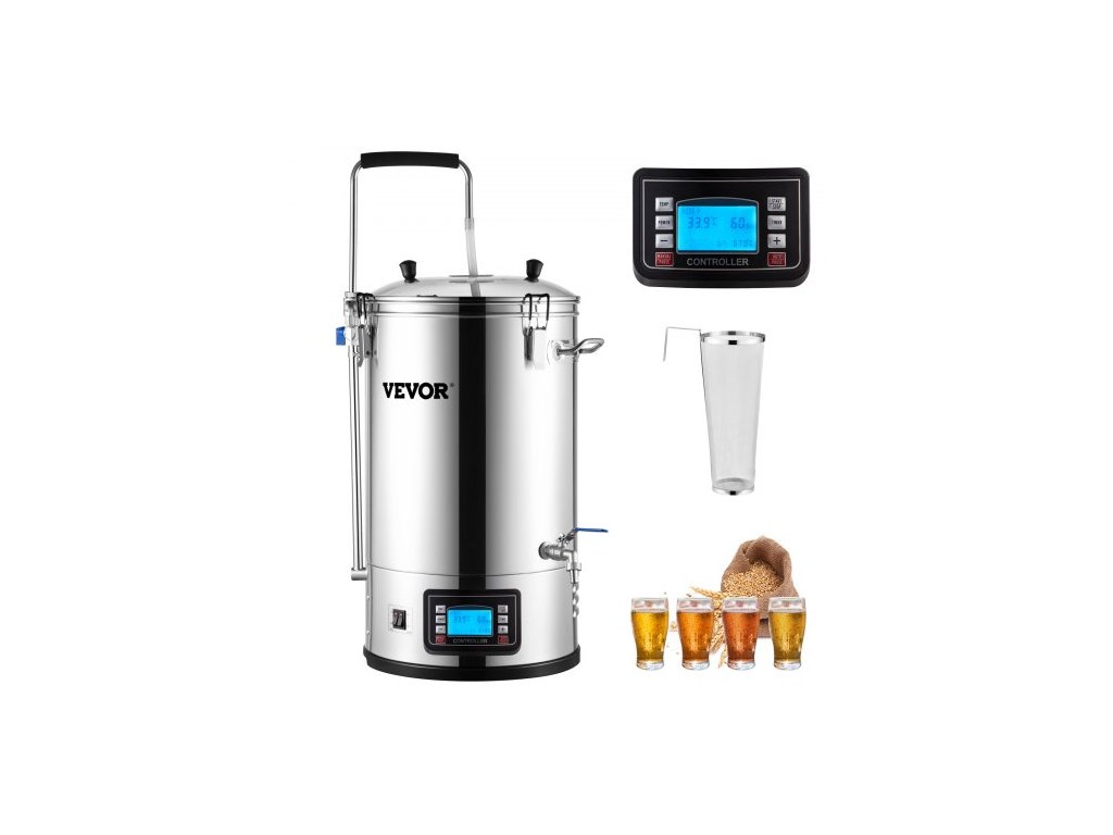 Elektrický varný systém , 8 galonů/30 l, domácí varný automat s automatickým/manuálním režimem, zařízením na vaření rmutu s výkonem 100–2500 W, teplotou 25–100 °C, časovačem 1–180 min, oběhovým čerpadlem, pamětí receptů, 2