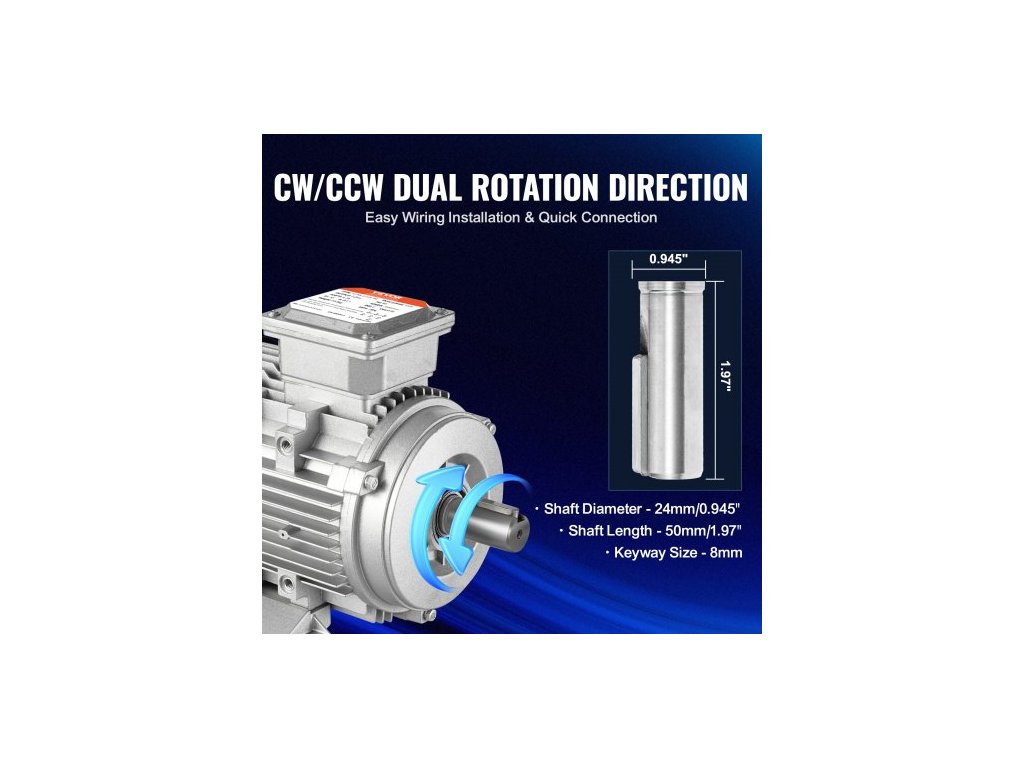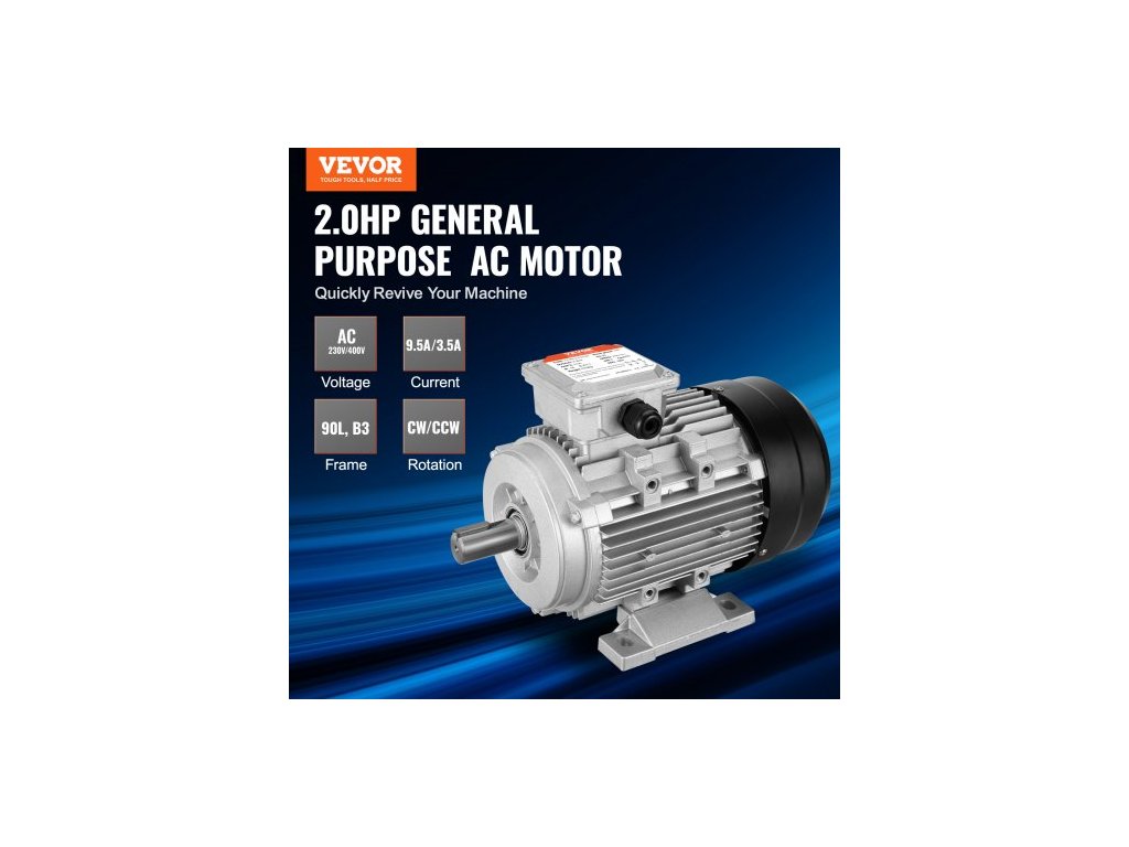 Elektromotor 1,5 kW 3000 ot./min, AC 230 V/400 V 9,5 A/3,5 A, 90 l, rám B3, třífázový motor vzduchového kompresoru, 24mm hřídel s perem, otáčení ve směru/proti směru hodinových ručiček pro zemědělské stroje a obecné zařízeníVysoká rychlost